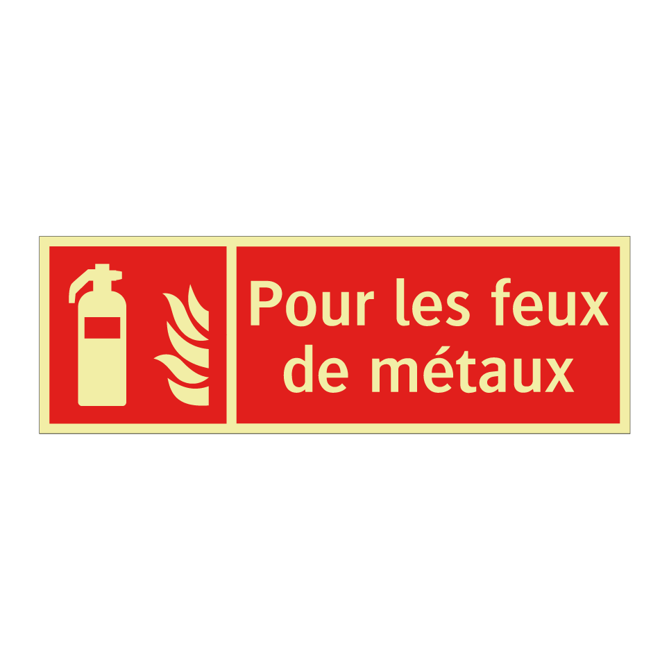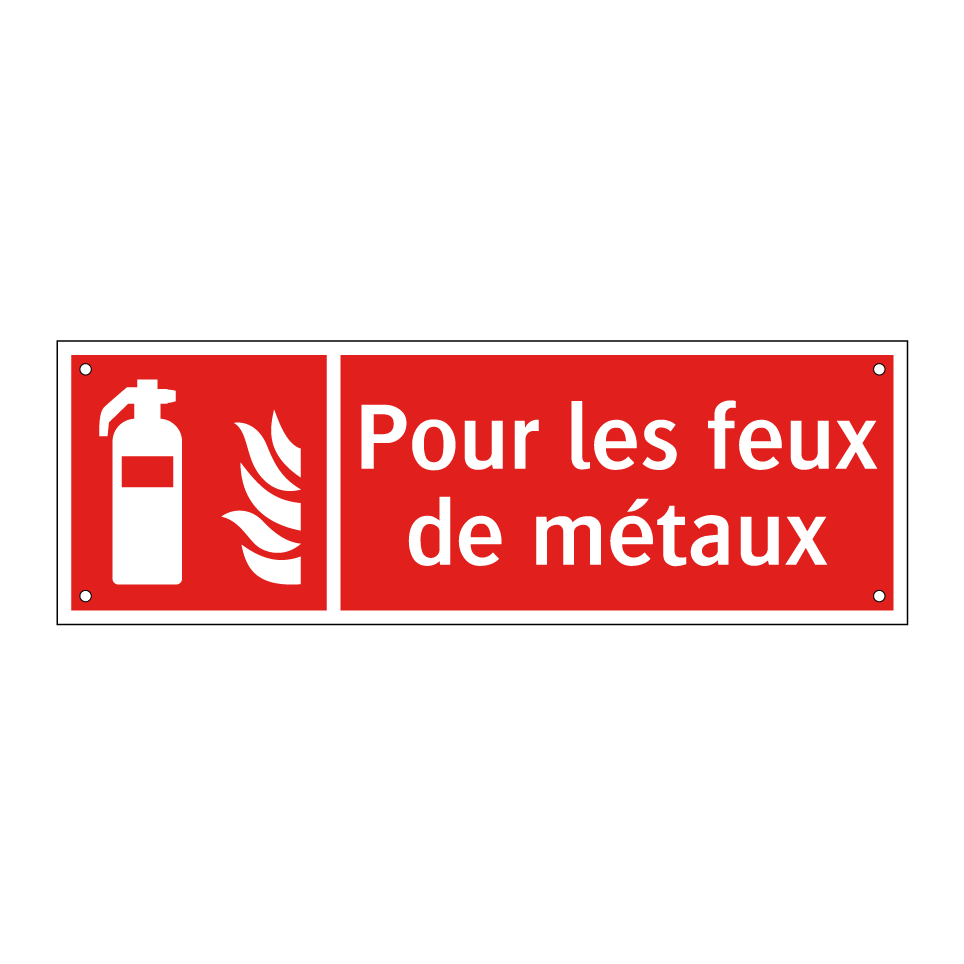 Panneau incendie avec le texte Pour les feux de métaux et une symbolique claire