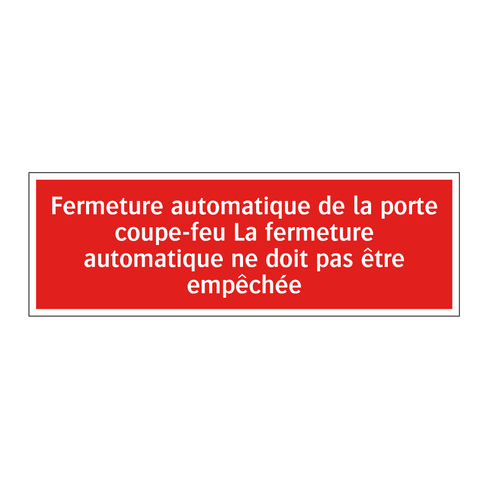 Panneau de signalisation incendie avec le texte Fermeture automatique de la porte coupe-feu La fermeture automatique ne doit pas être empêchée