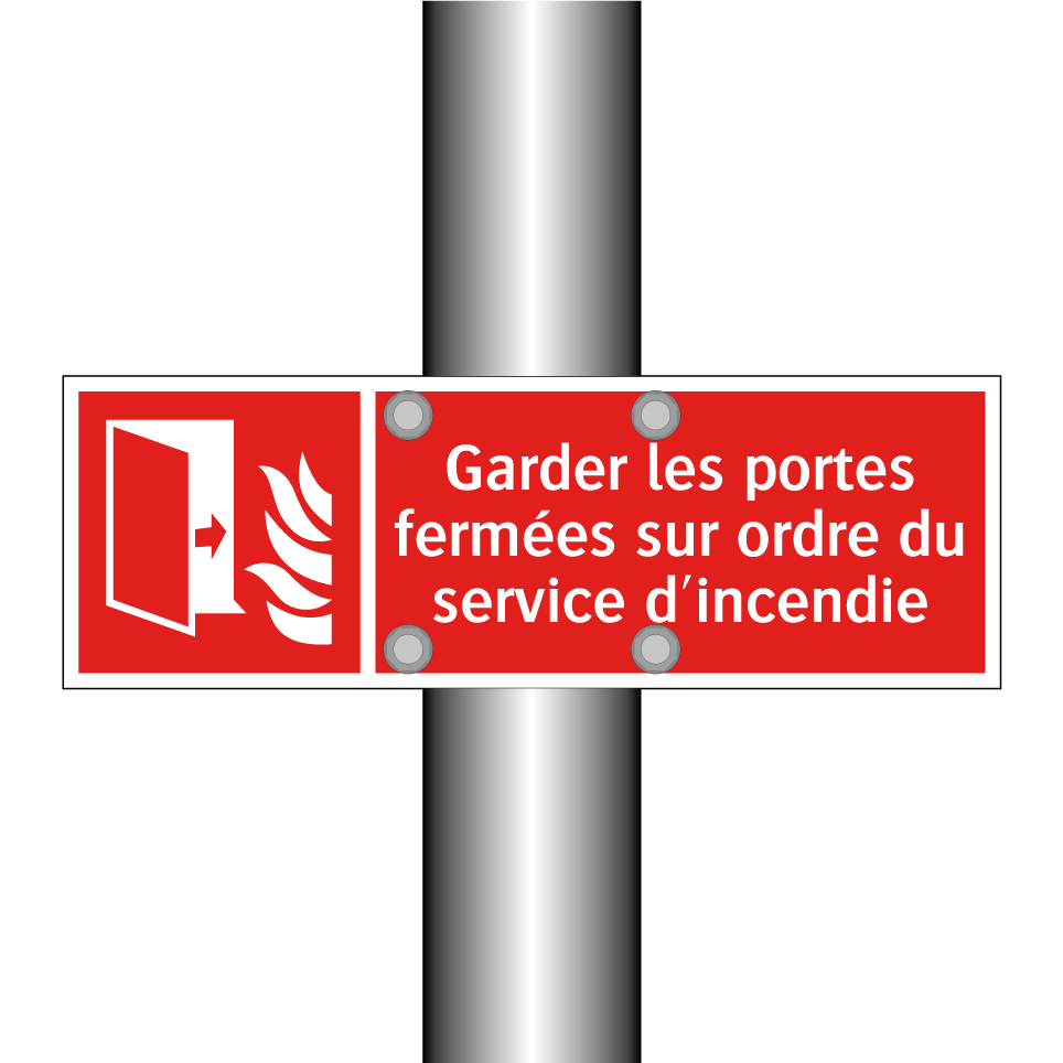Panneau incendie avec le texte Garder les portes fermées sur ordre du service d'incendie et une symbolique claire