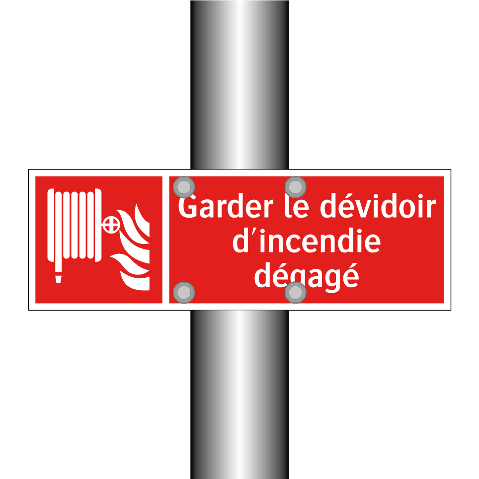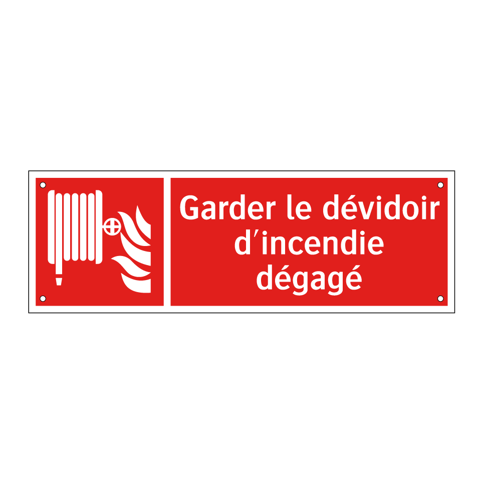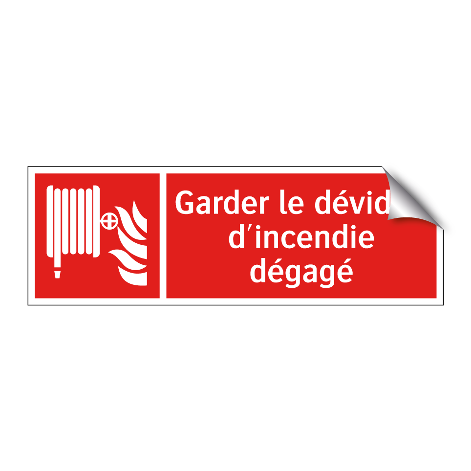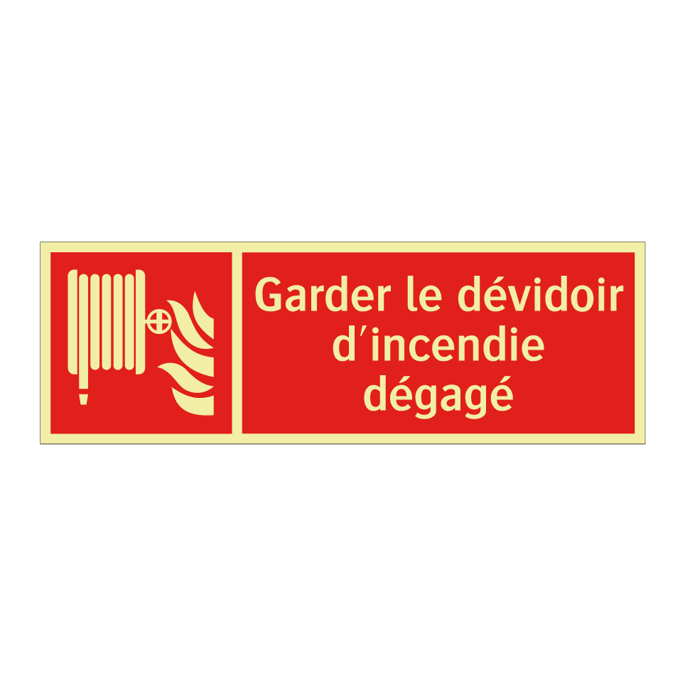 Panneau incendie avec le texte Garder le dévidoir d'incendie dégagé et une symbolique claire