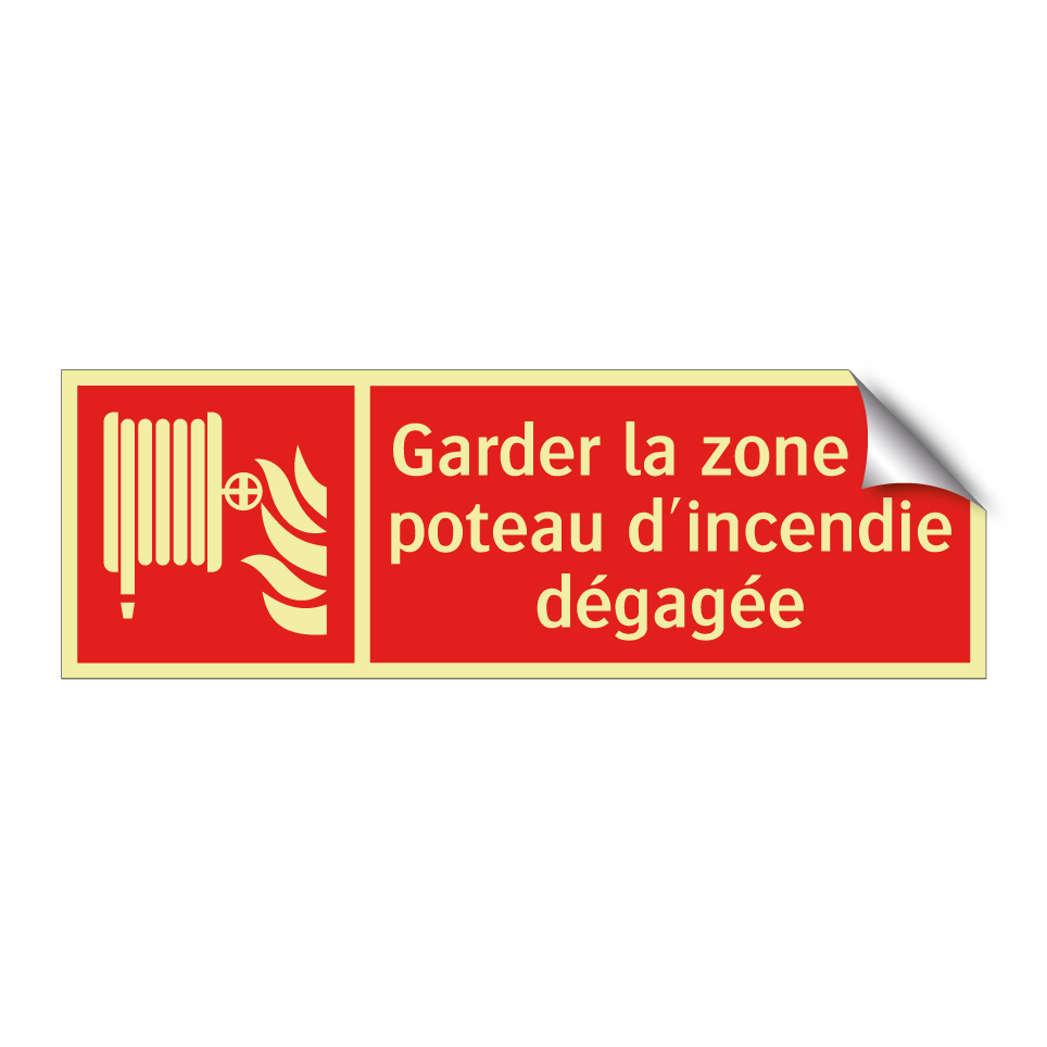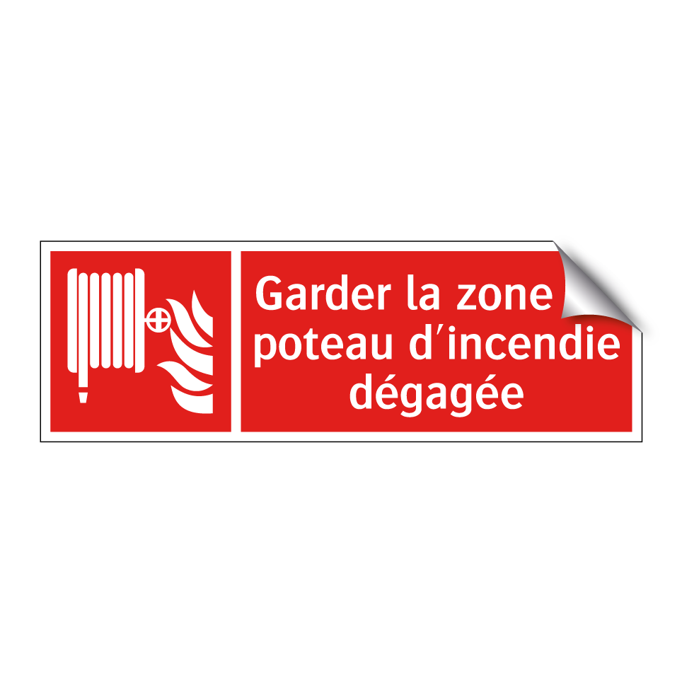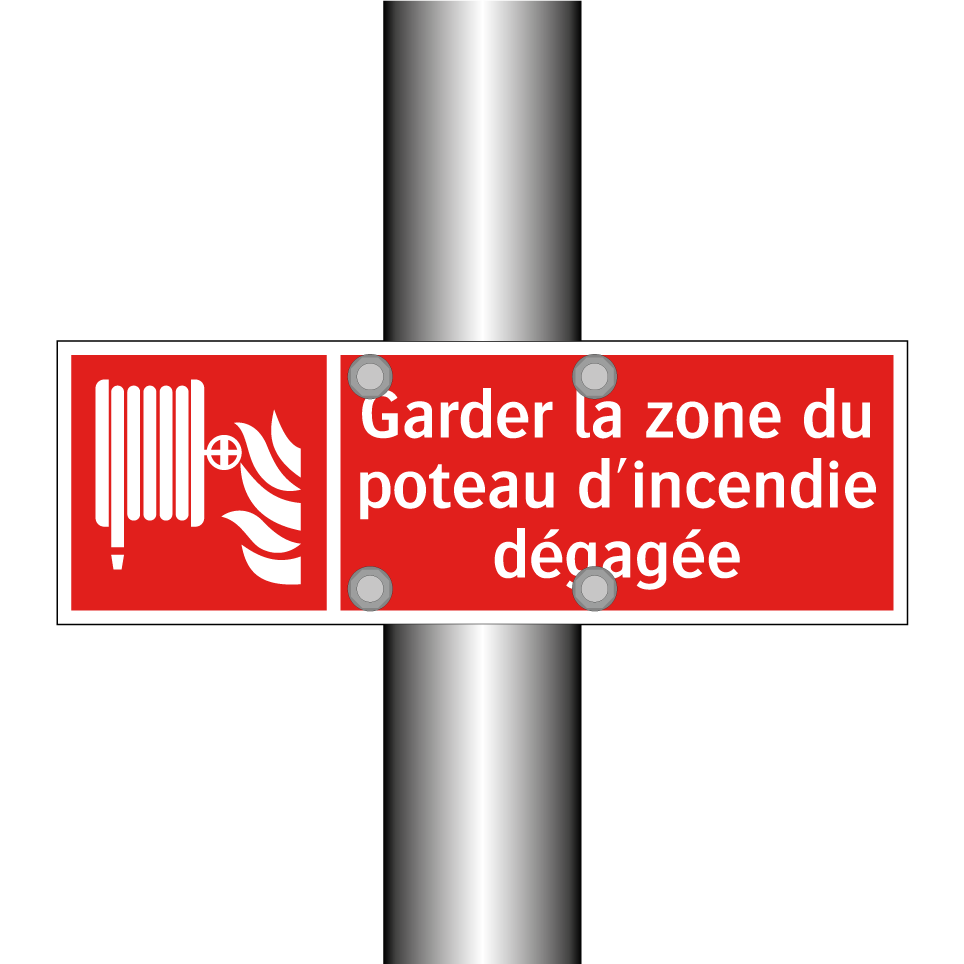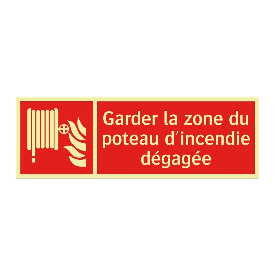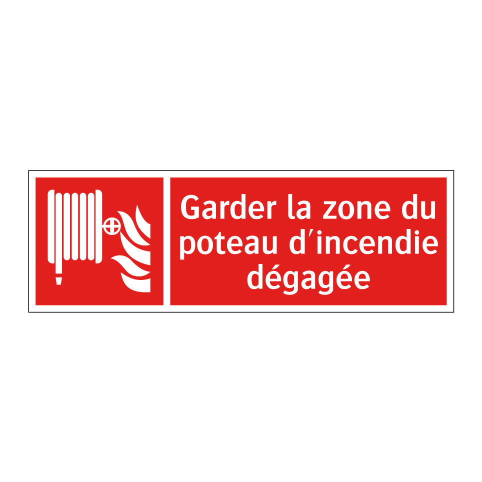 Panneau incendie avec le texte Garder la zone du poteau d'incendie dégagée et une symbolique claire