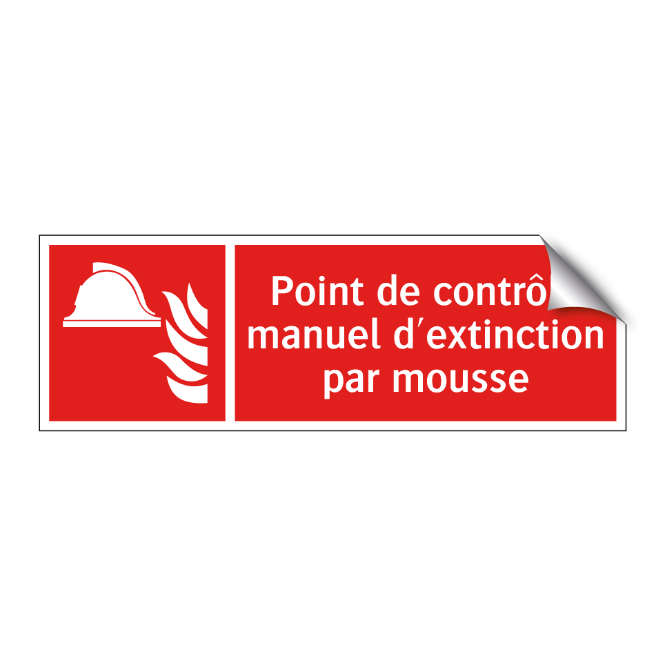 Panneau incendie avec le texte Point de contrôle manuel d'extinction par mousse et une symbolique claire