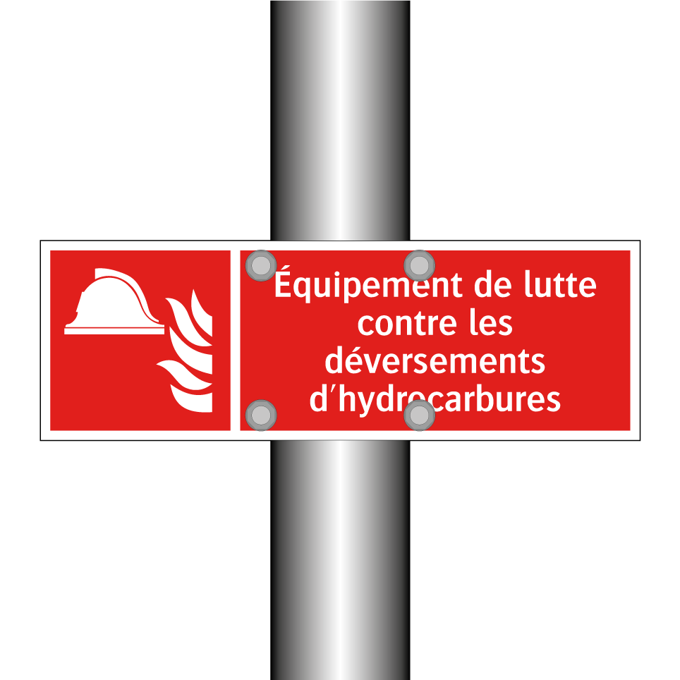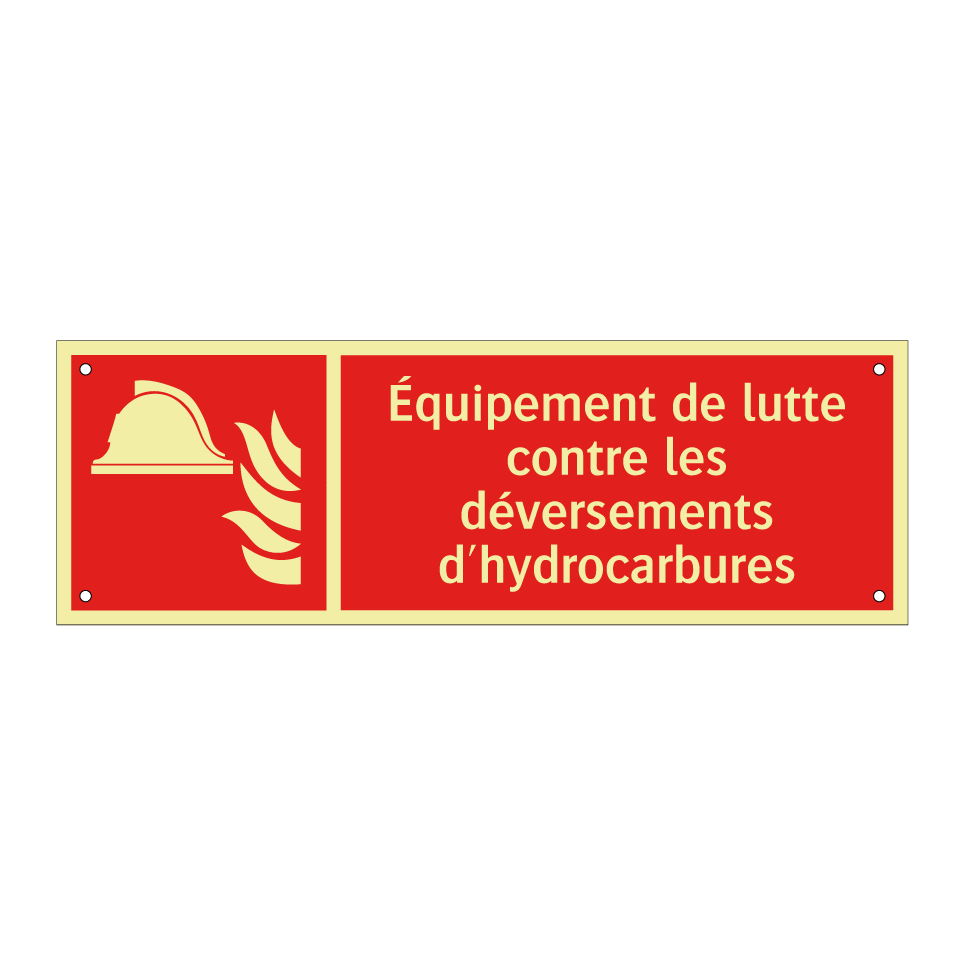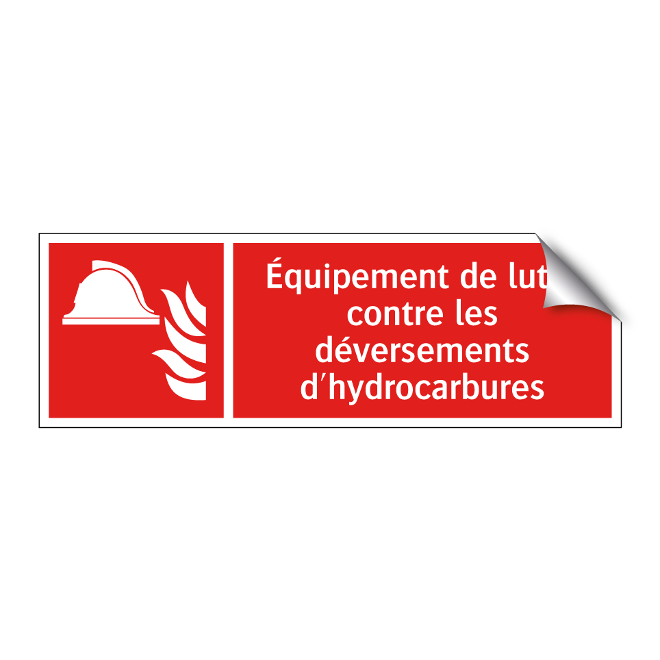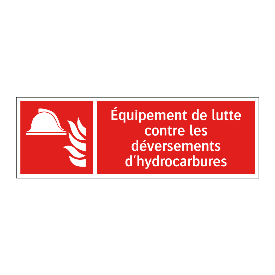 Panneau incendie avec le texte Équipement de lutte contre les déversements d'hydrocarbures et une symbolique claire