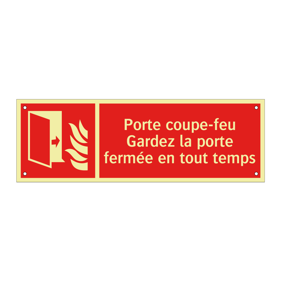 Panneau incendie avec le texte Porte coupe-feu Gardez la porte fermée en tout temps et une symbolique claire