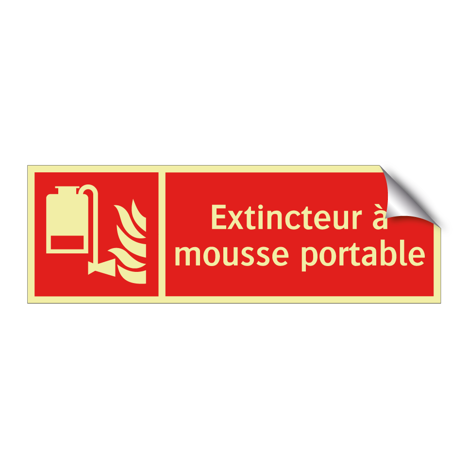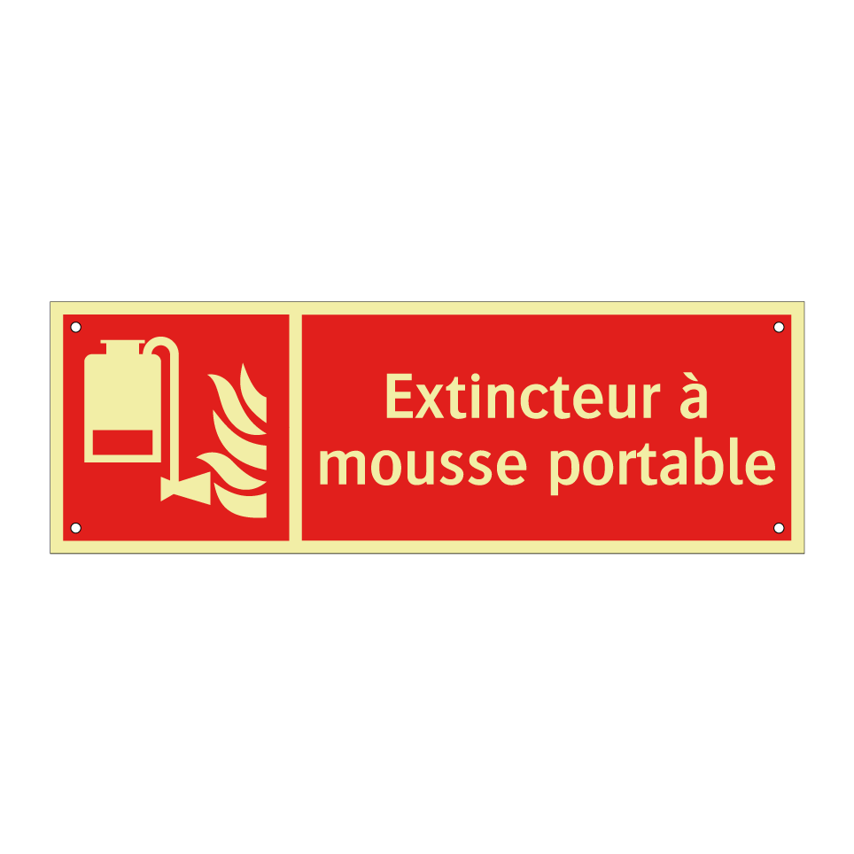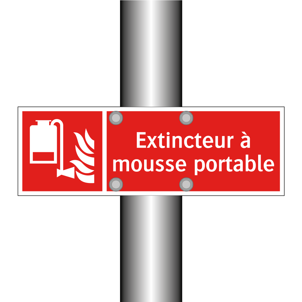 Panneau incendie avec le texte Extincteur à mousse portable et une symbolique claire