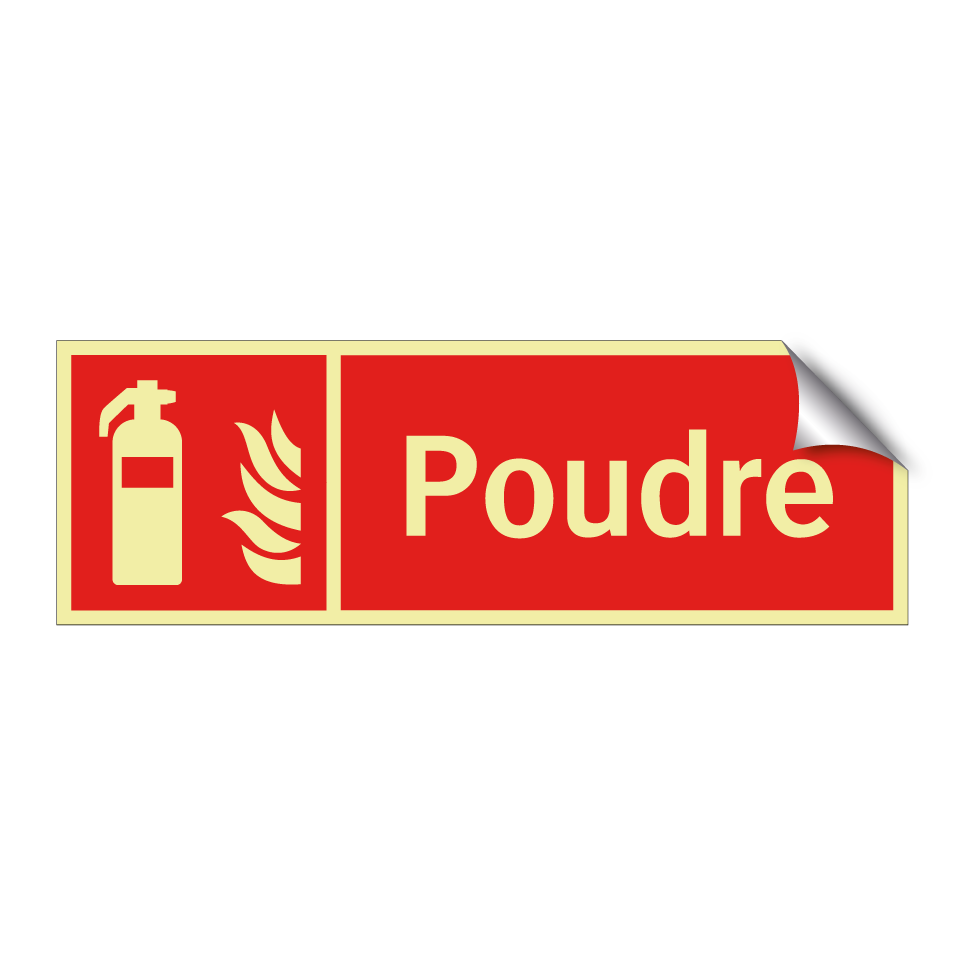 Panneau incendie avec le texte Poudre et une symbolique claire
