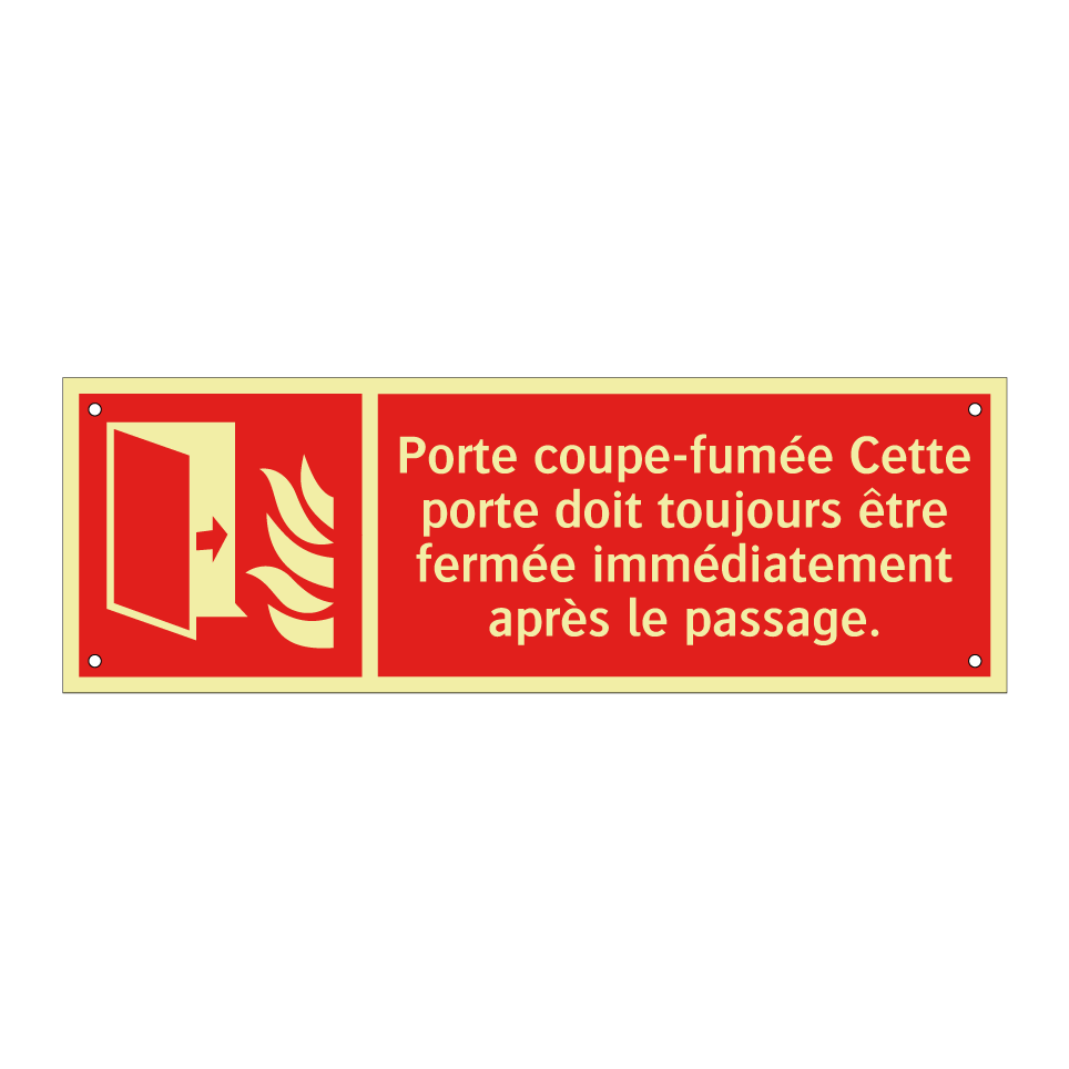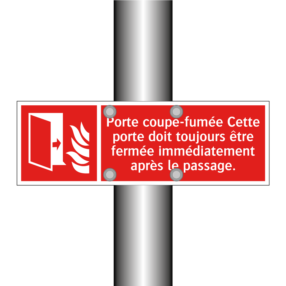 Cette signalisation de sécurité incendie est essentielle pour garantir la sécurité dans les bâtiments. Elle est conçue pour être placée à proximité des portes coupe-fumée, assurant que celles-ci restent fermées après chaque passage. Idéale pour les immeubles de bureaux, les centres commerciaux, les hôpitaux et les écoles, elle contribue à prévenir la propagation de la fumée en cas d'incendie. Grâce à son fond rouge vif et son texte blanc clair, elle est facilement visible et compréhensible, même en situation d'urgence. Installez-la à hauteur des yeux pour une visibilité optimale et pour rappeler l'importance de maintenir les portes fermées.