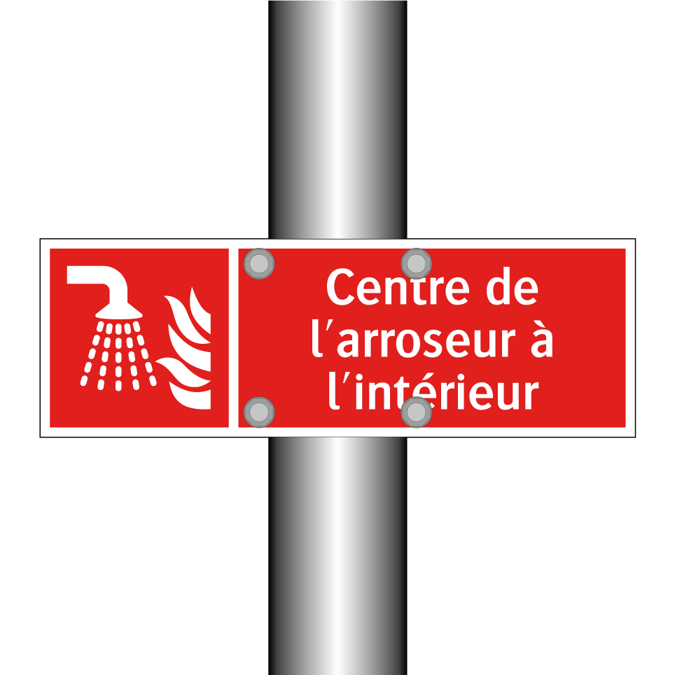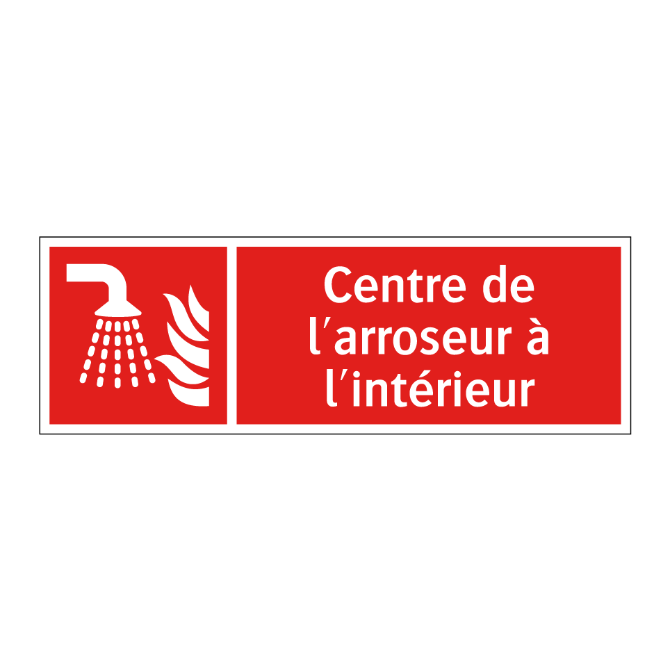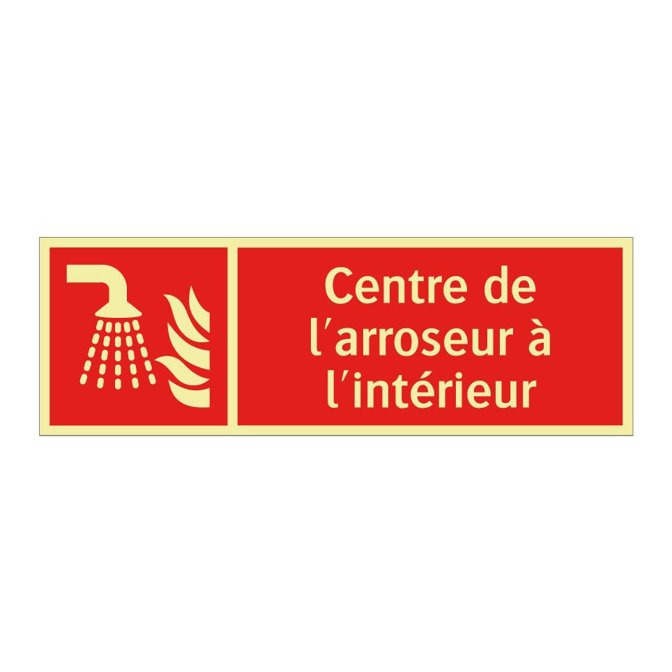 Panneau incendie avec le texte Centre de l'arroseur à l'intérieur et une symbolique claire