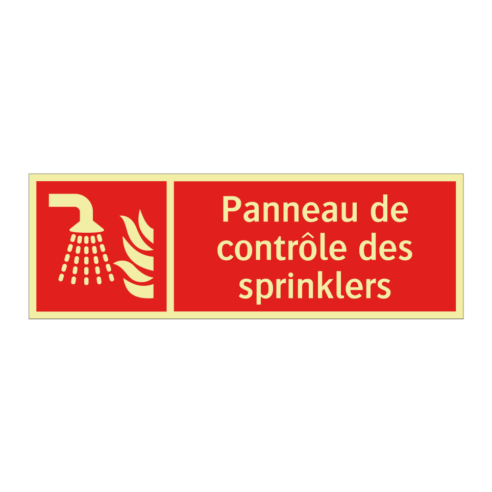 Panneau incendie avec le texte Panneau de contrôle des sprinklers et une symbolique claire