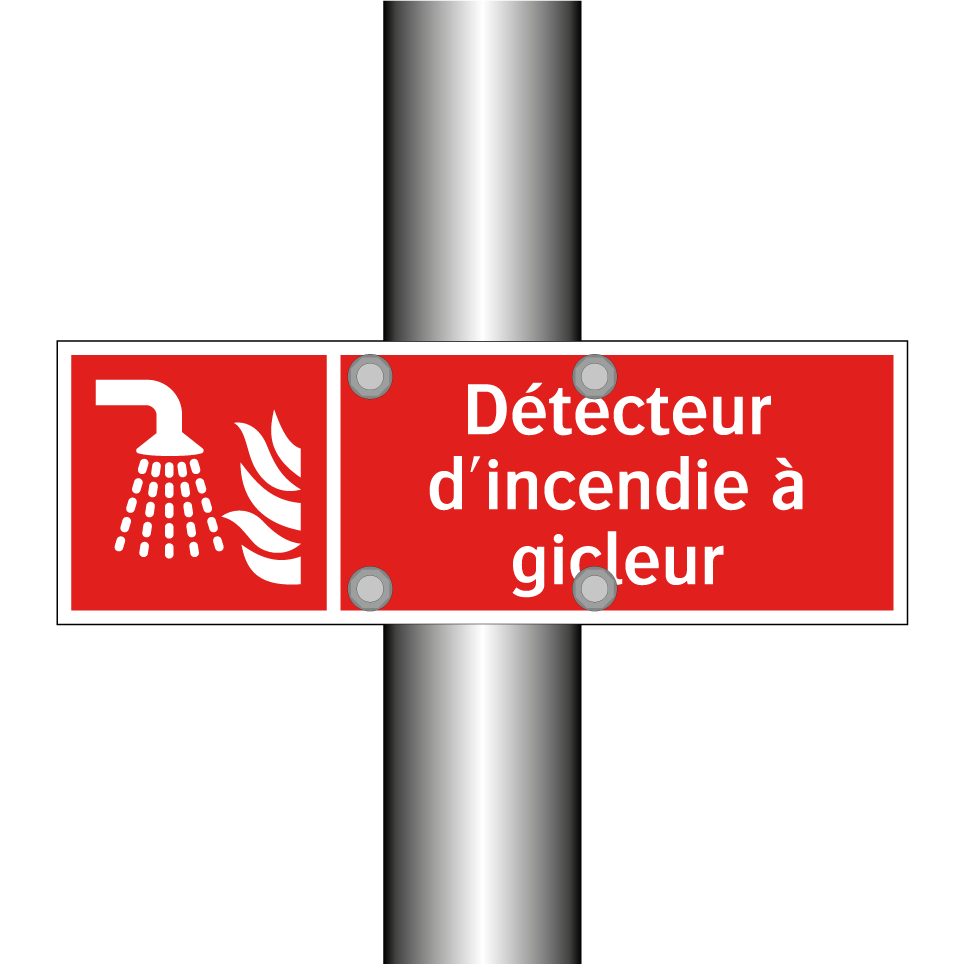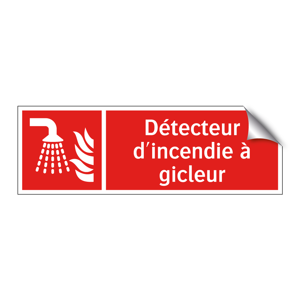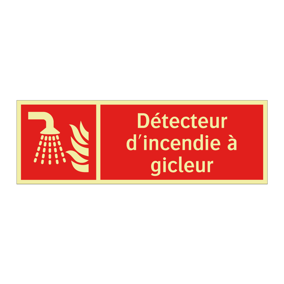 Panneau incendie avec le texte Détecteur d'incendie à gicleur et une symbolique claire