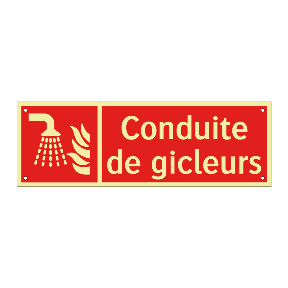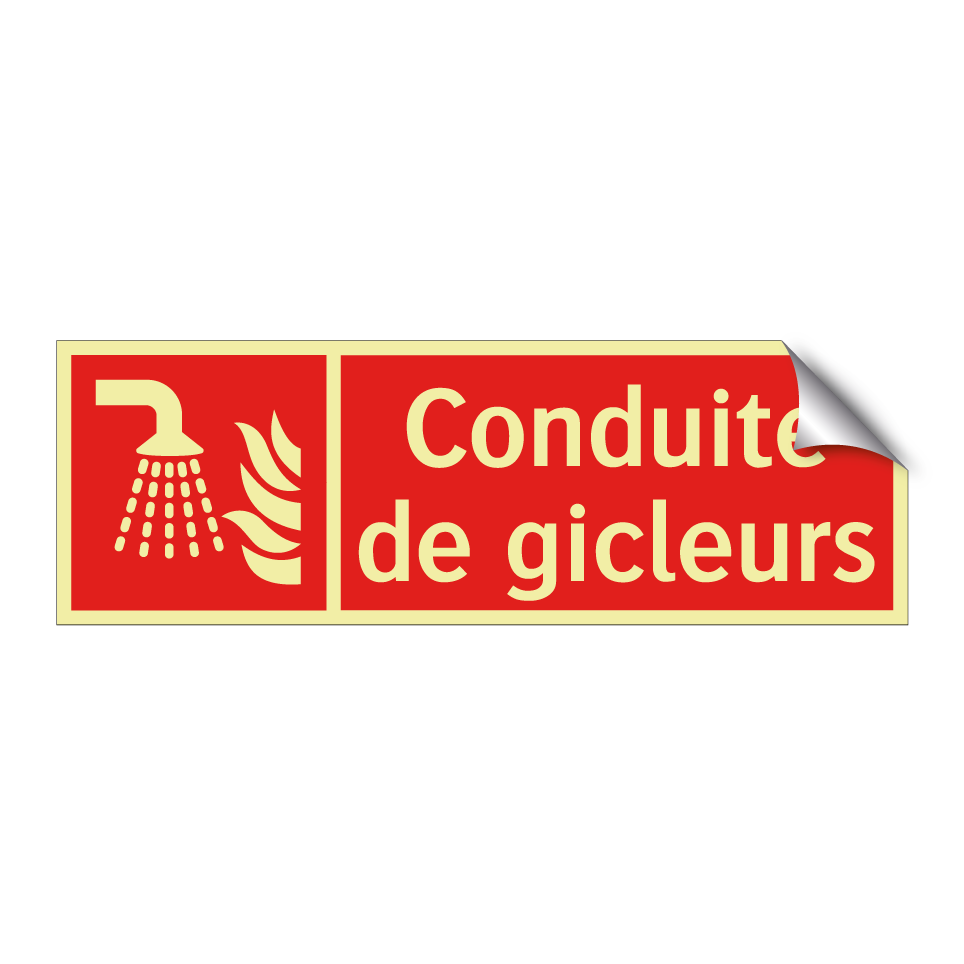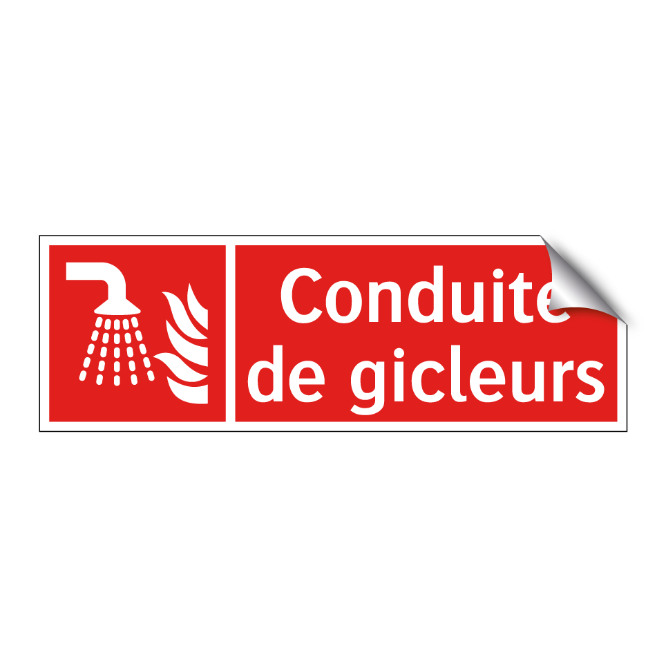 Panneau incendie avec le texte Conduite de gicleurs et une symbolique claire