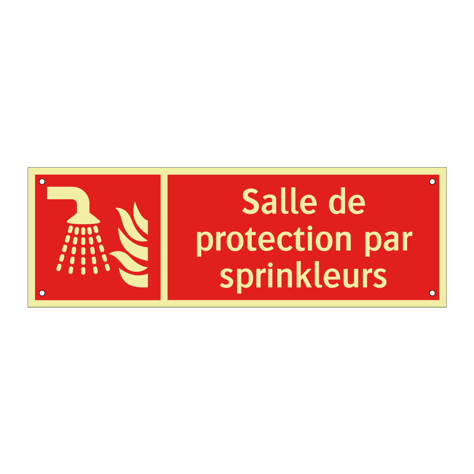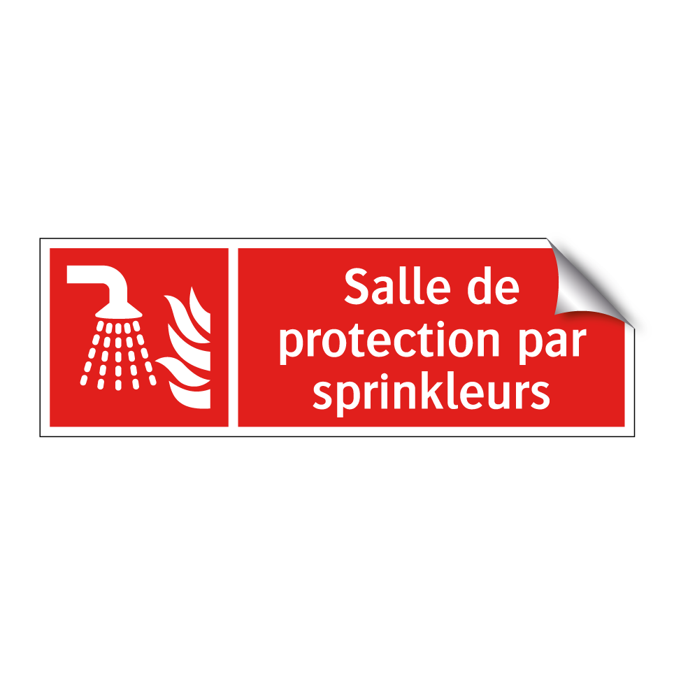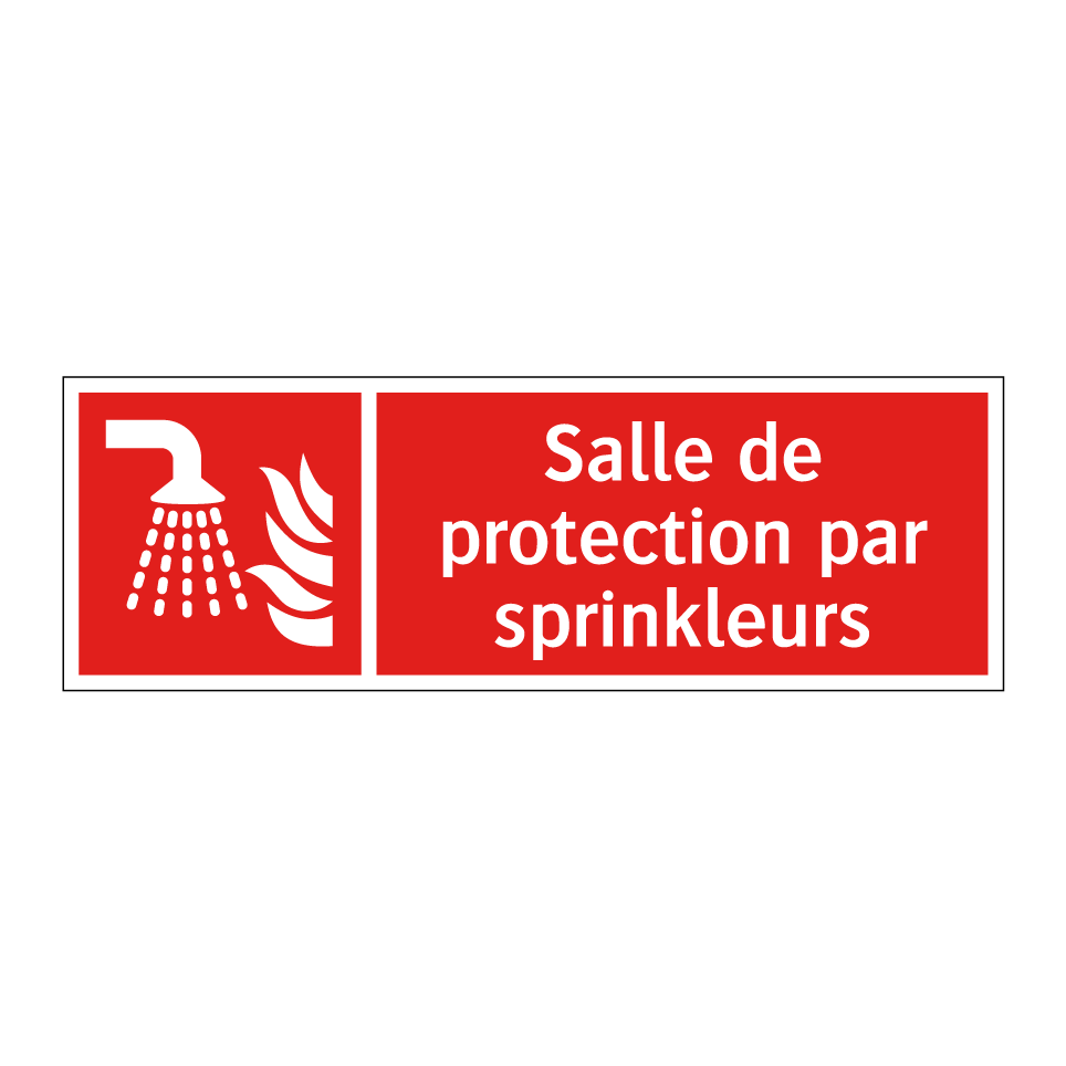 Panneau incendie avec le texte Salle de protection par sprinkleurs et une symbolique claire