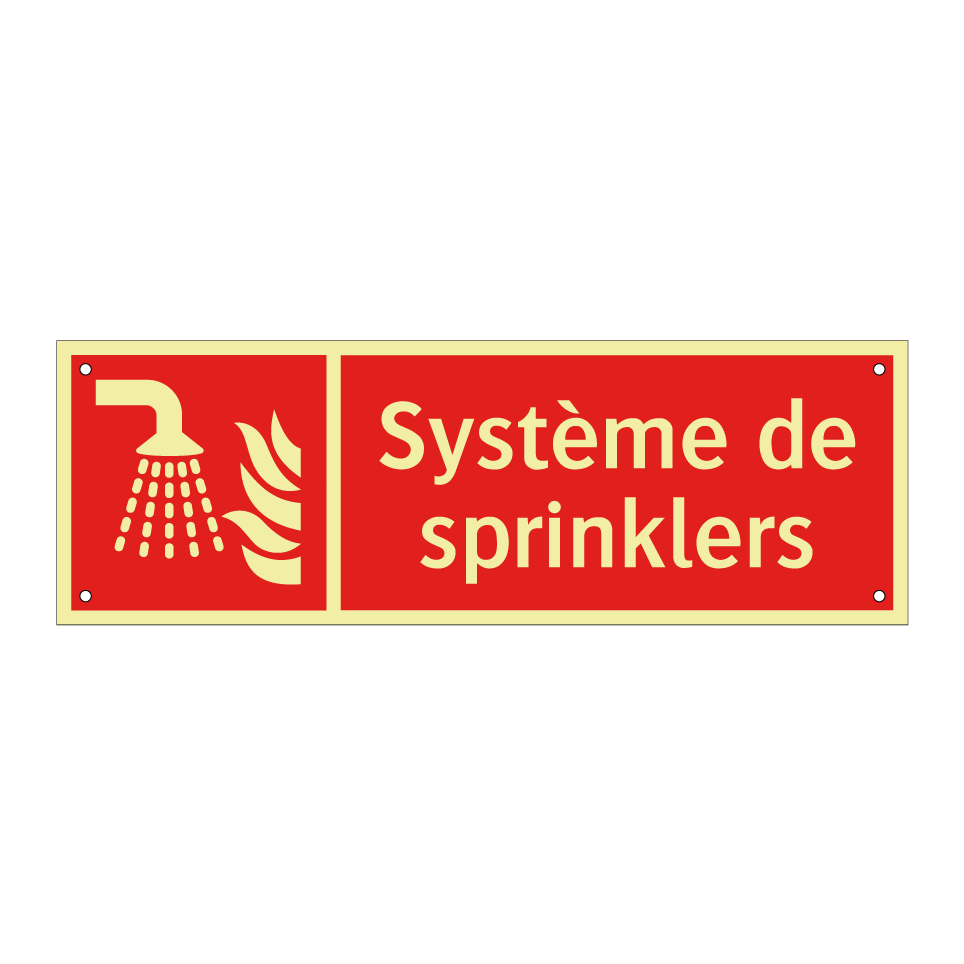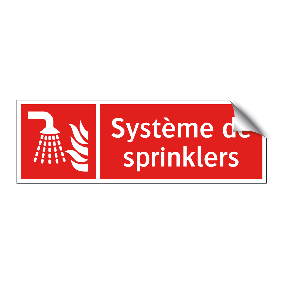 Panneau incendie avec le texte Système de sprinklers et une symbolique claire
