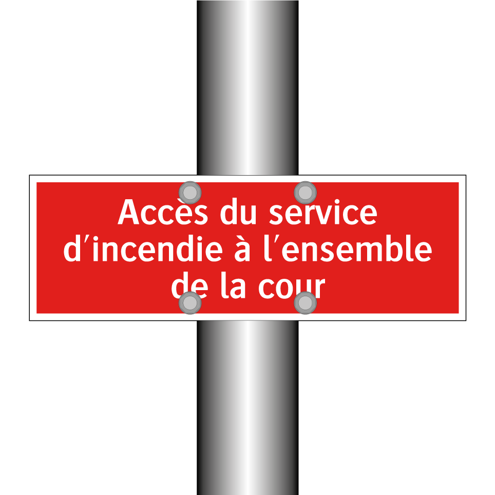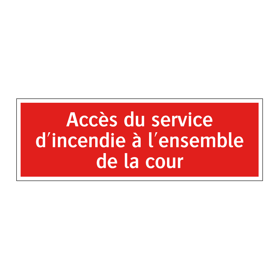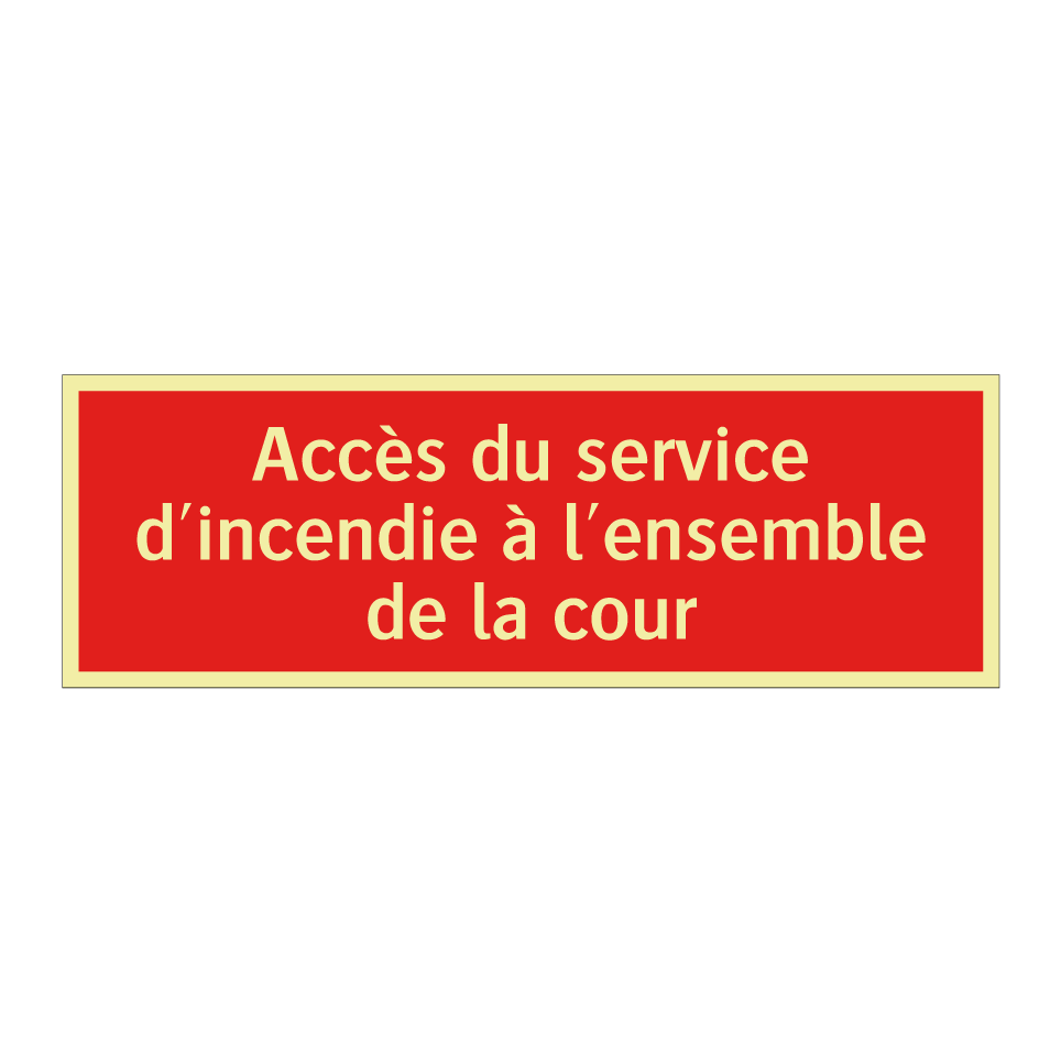 Panneau de signalisation incendie avec le texte Accès du service d'incendie à l'ensemble de la cour