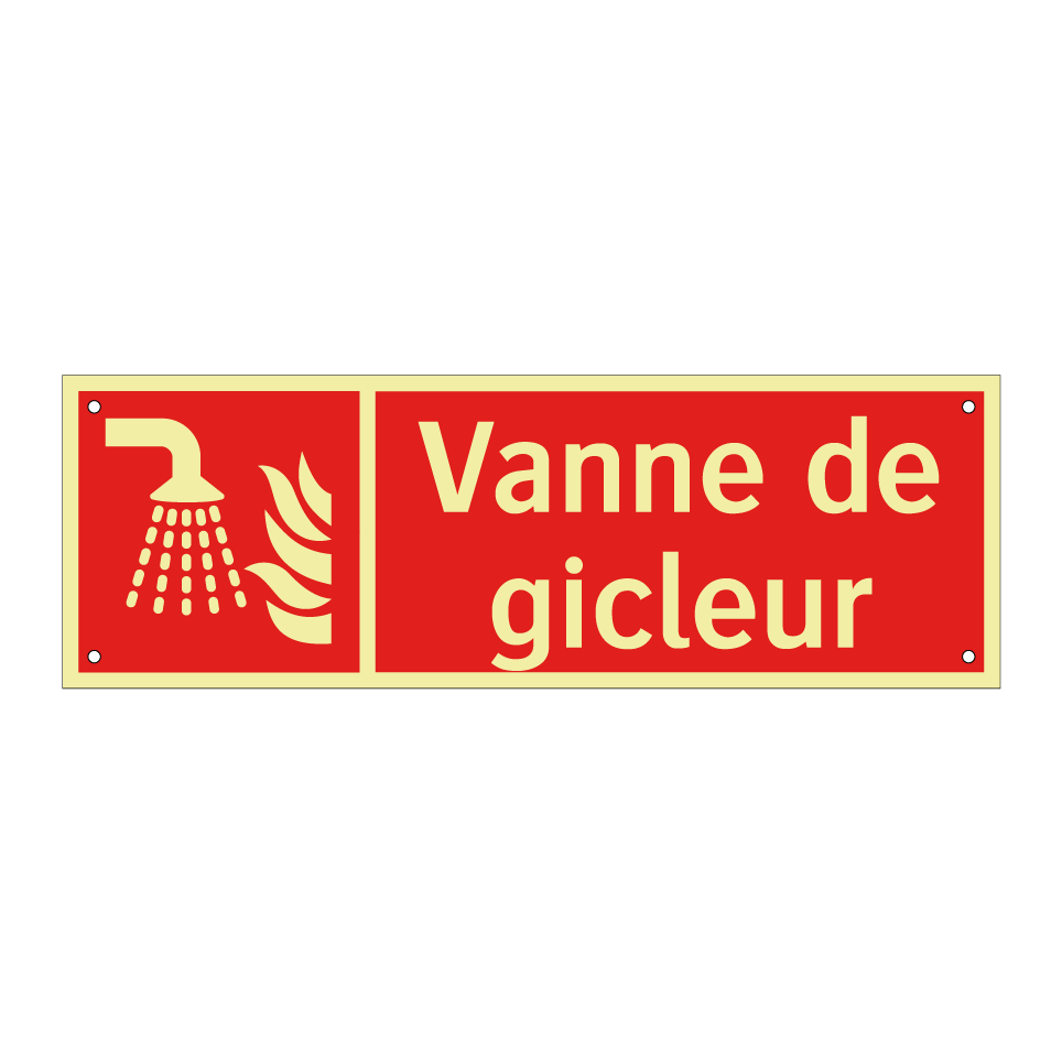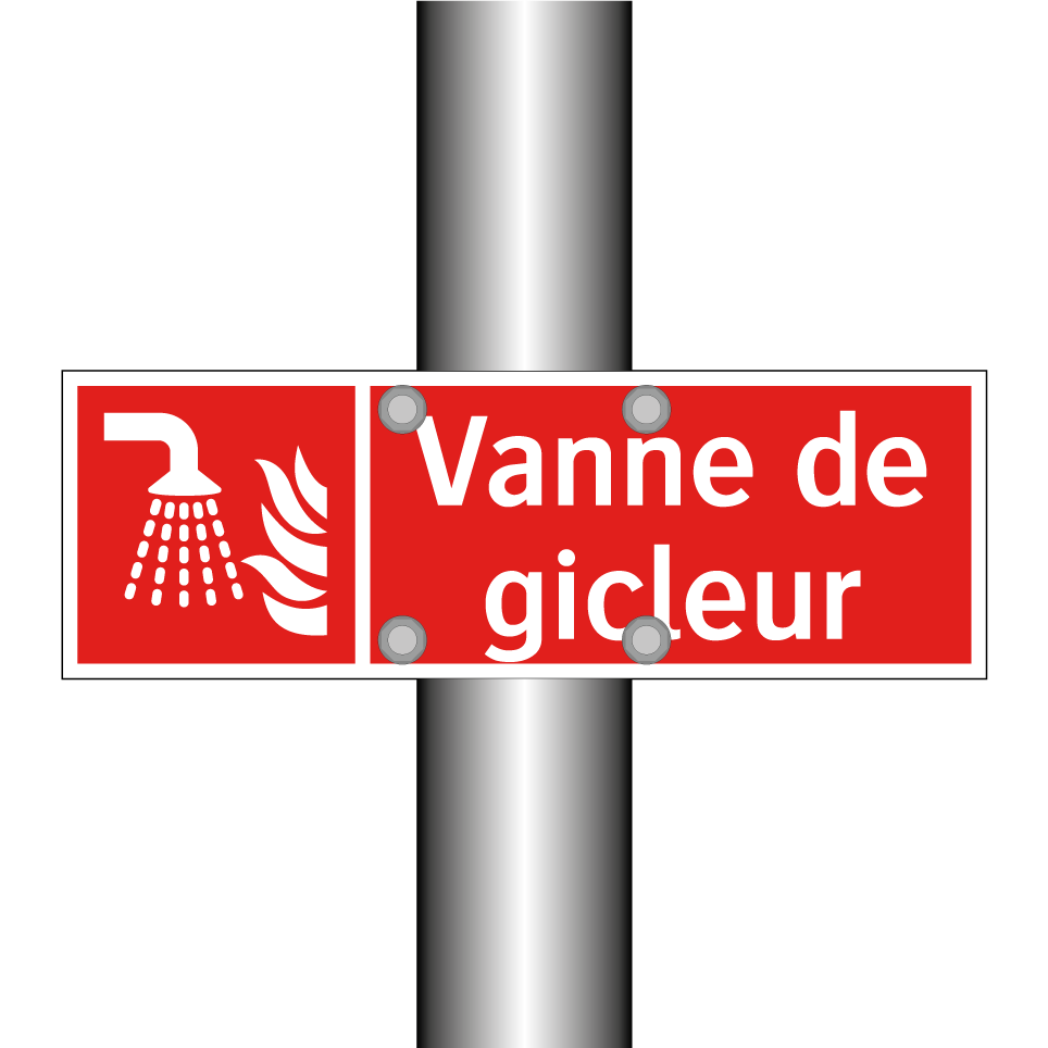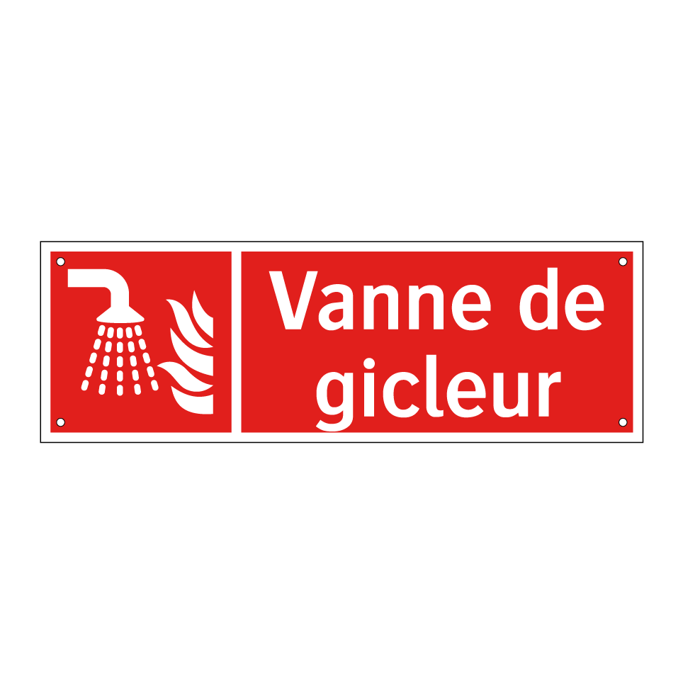 Panneau incendie avec le texte Vanne de gicleur et une symbolique claire