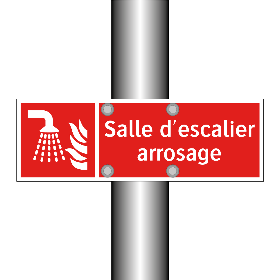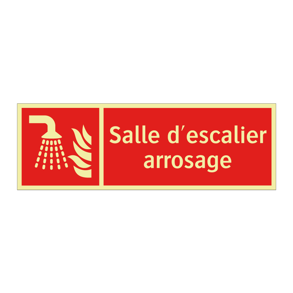 Panneau incendie avec le texte Salle d'escalier arrosage et une symbolique claire