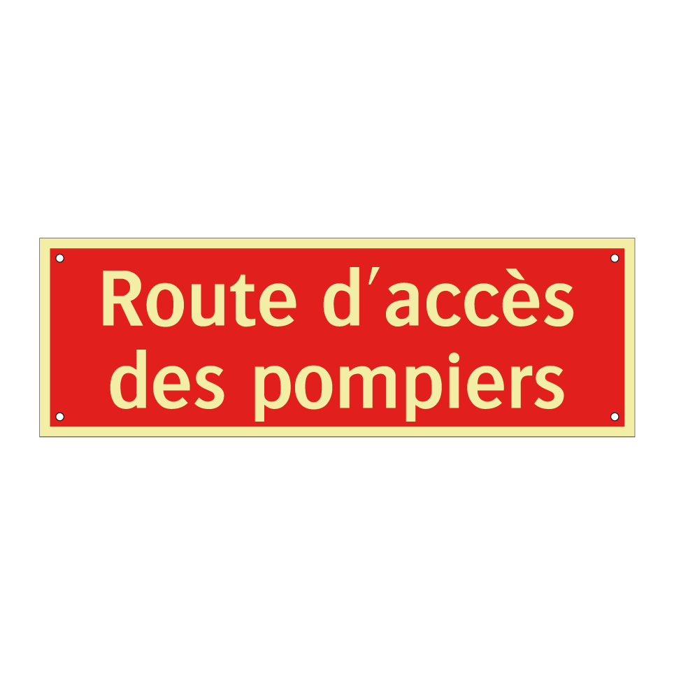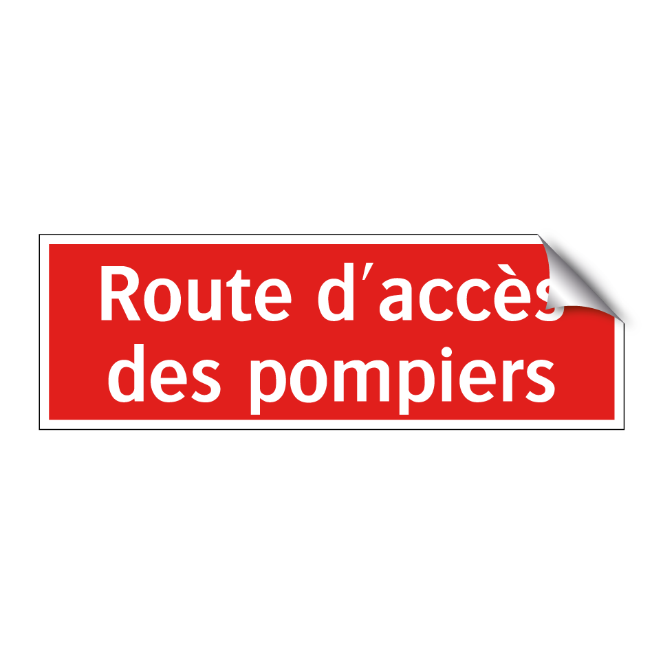 Panneau de signalisation incendie avec le texte Route d'accès des pompiers