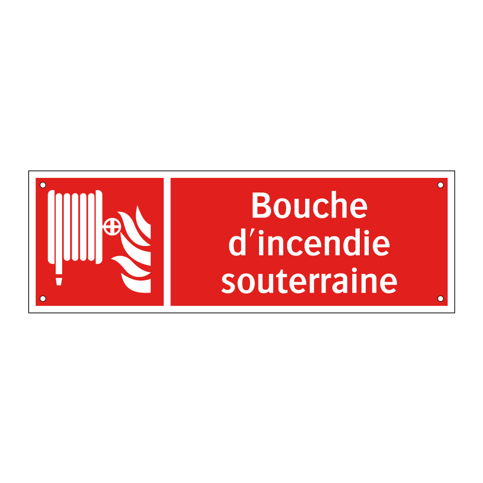 Panneau incendie avec le texte Bouche d'incendie souterraine et une symbolique claire