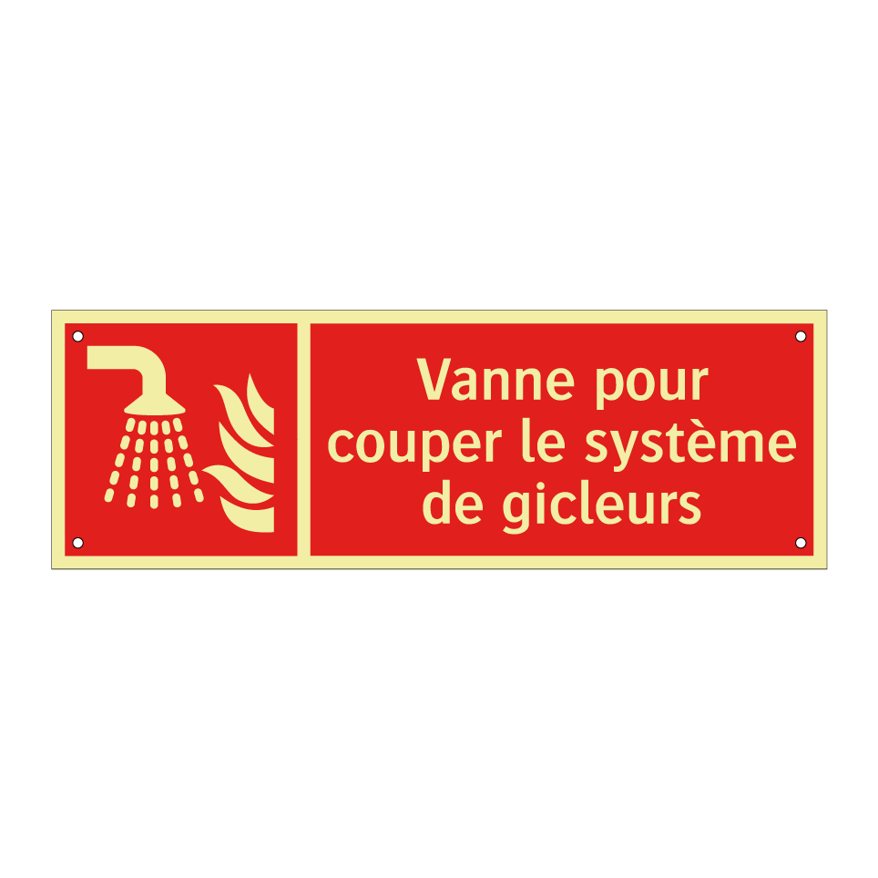 Panneau incendie avec le texte Vanne pour couper le système de gicleurs et une symbolique claire