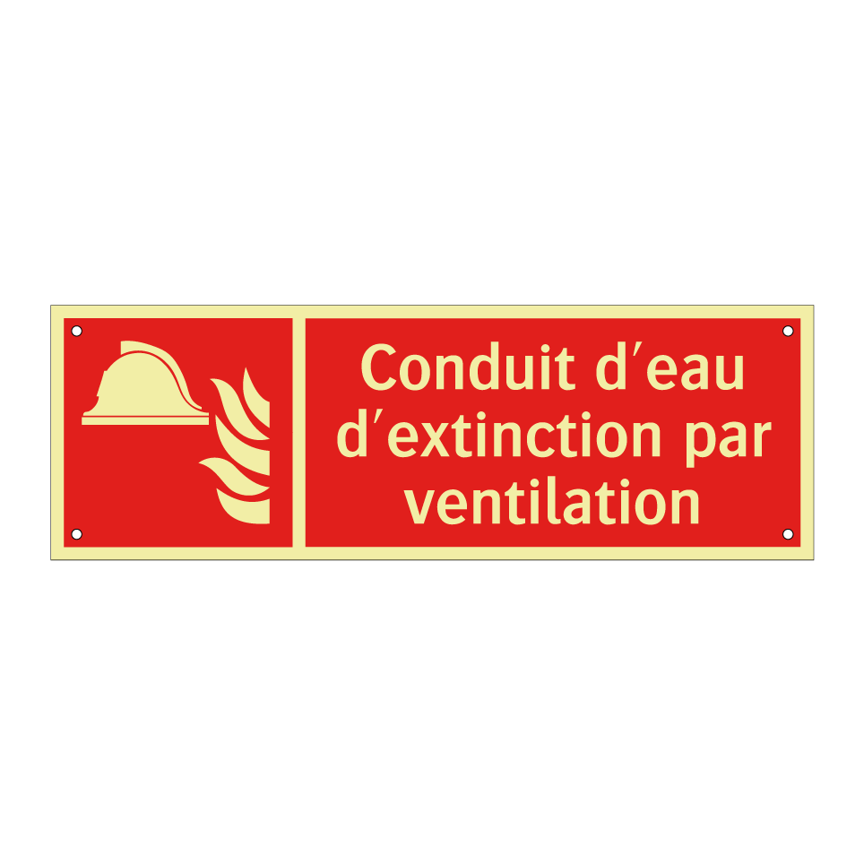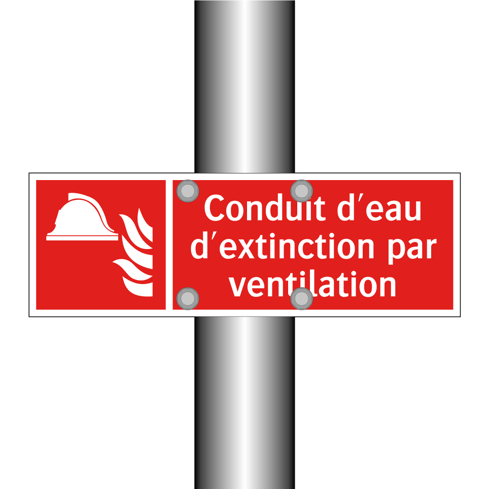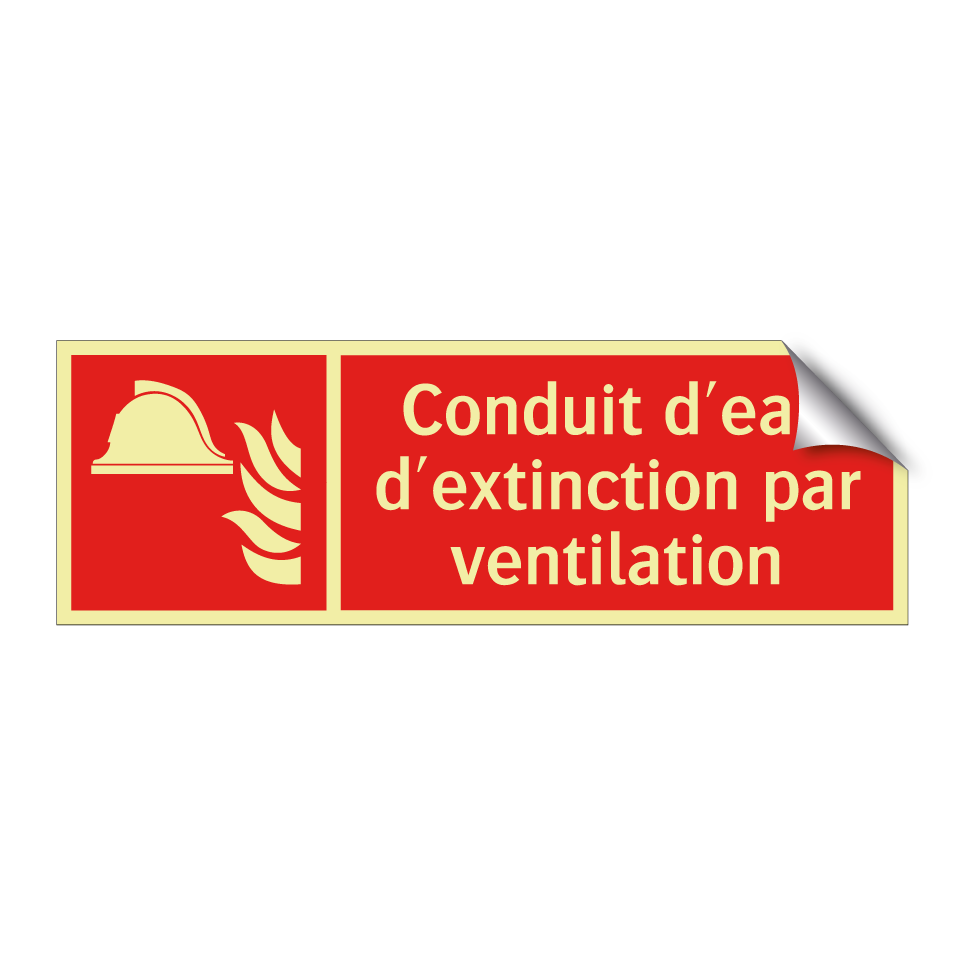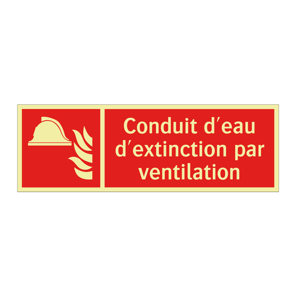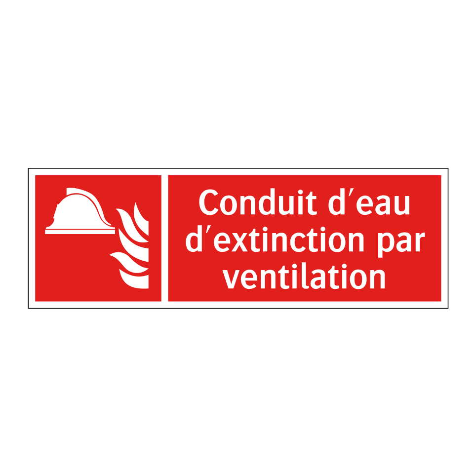 Panneau incendie avec le texte Conduit d'eau d'extinction par ventilation et une symbolique claire