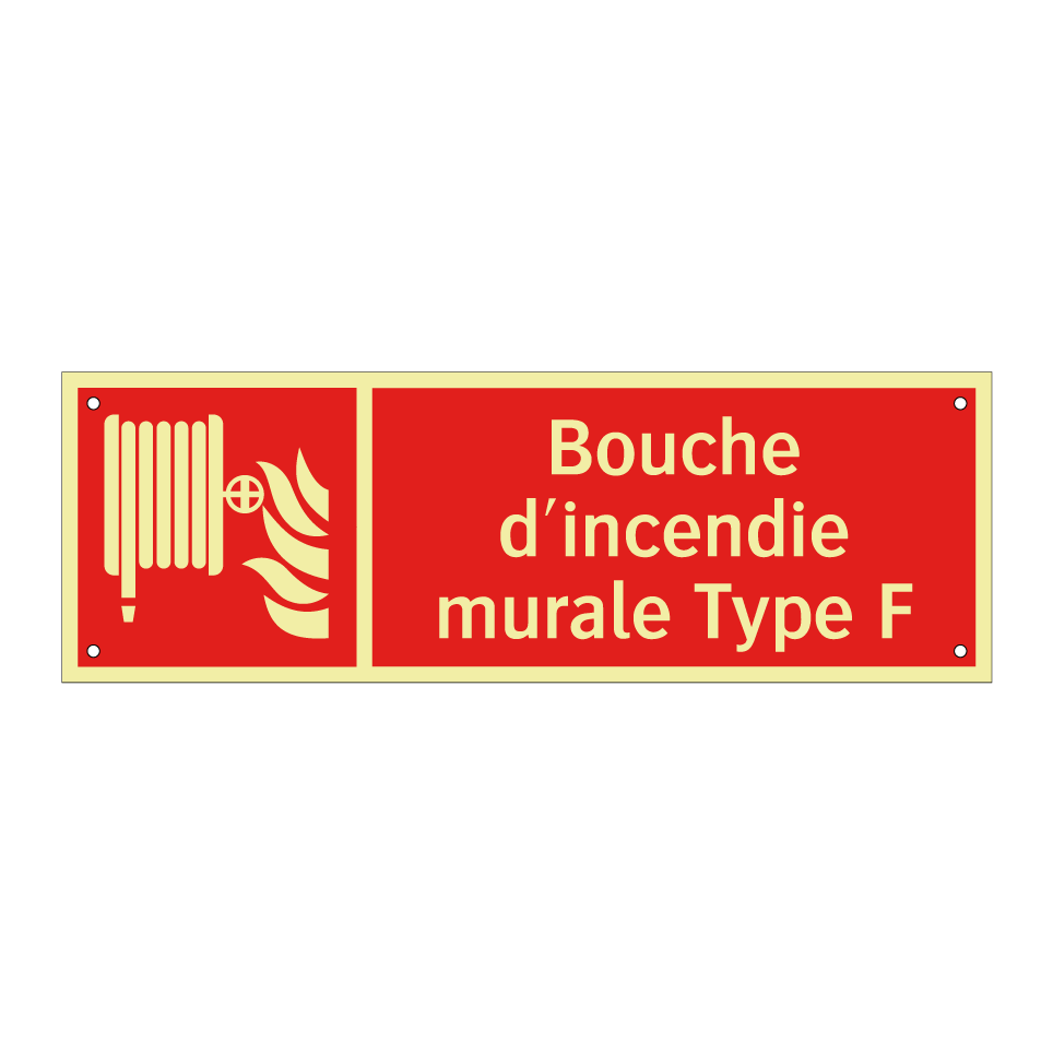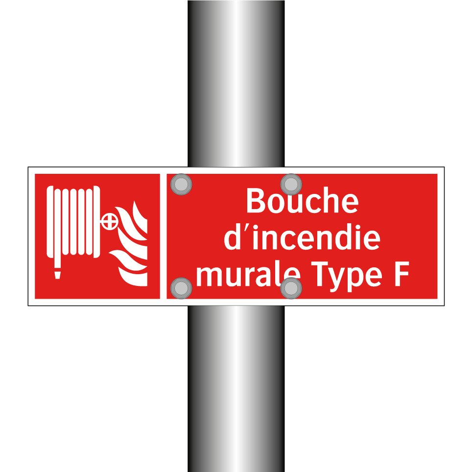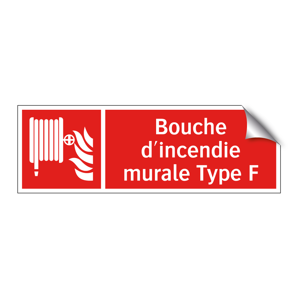 Panneau incendie avec le texte Bouche d'incendie murale Type F et une symbolique claire