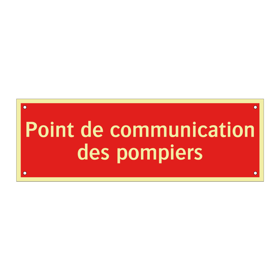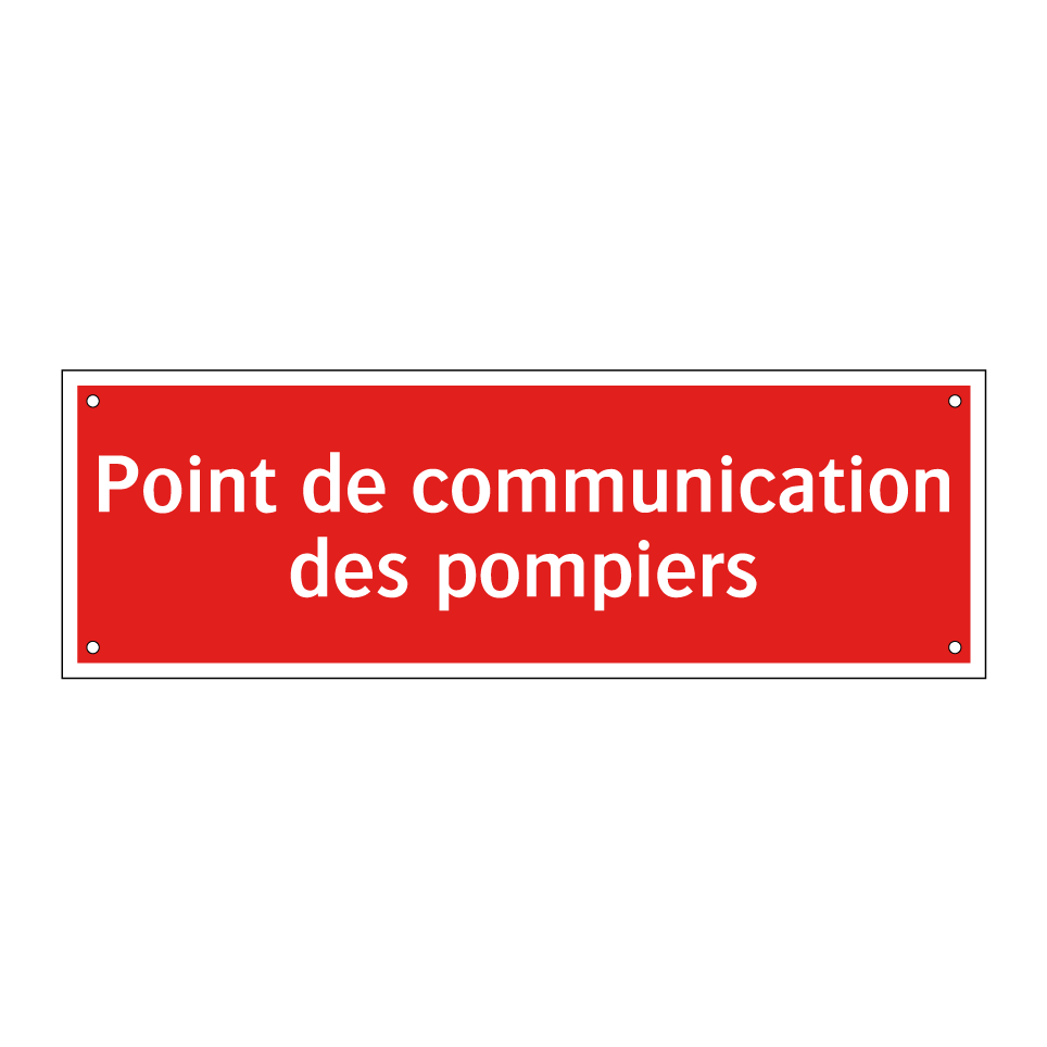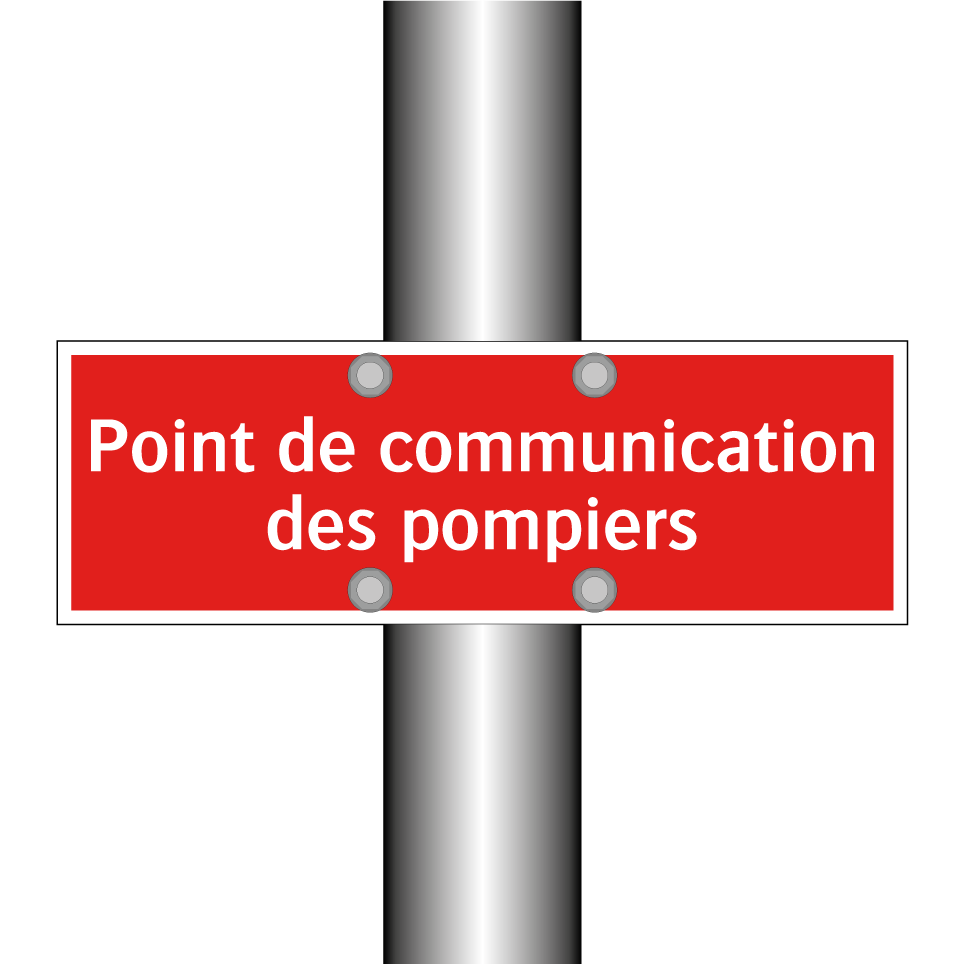 Panneau de signalisation incendie avec le texte Point de communication des pompiers