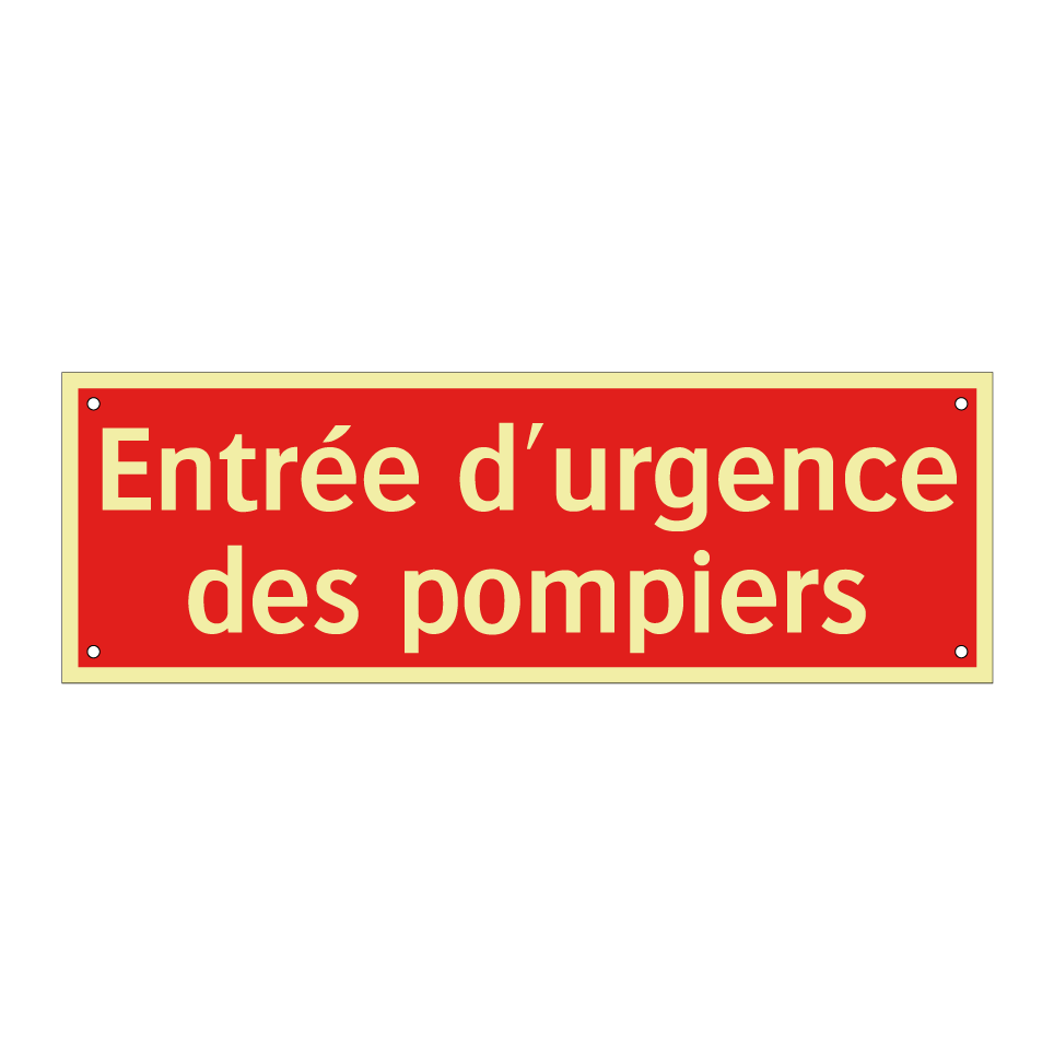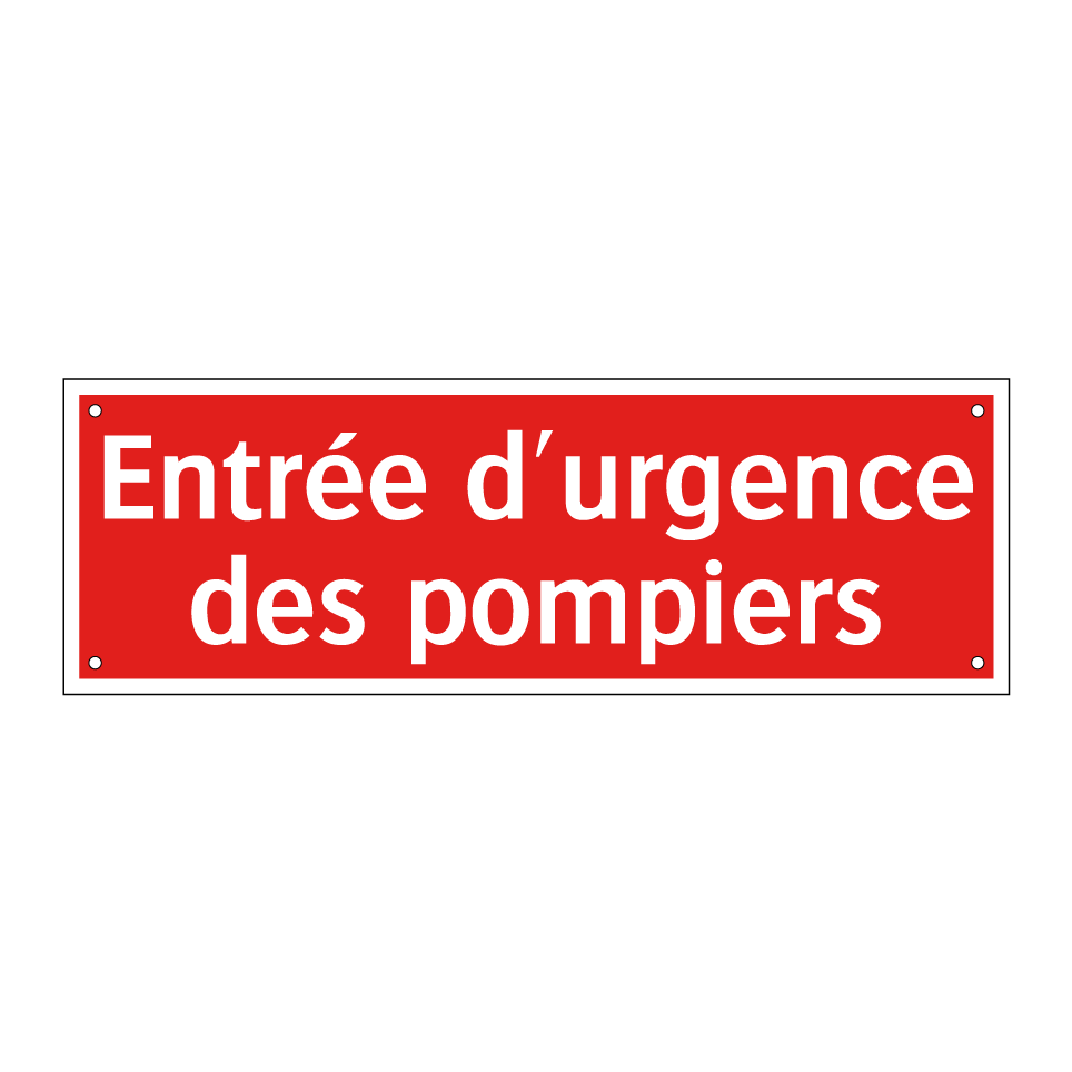 Panneau de signalisation incendie avec le texte Entrée d'urgence des pompiers