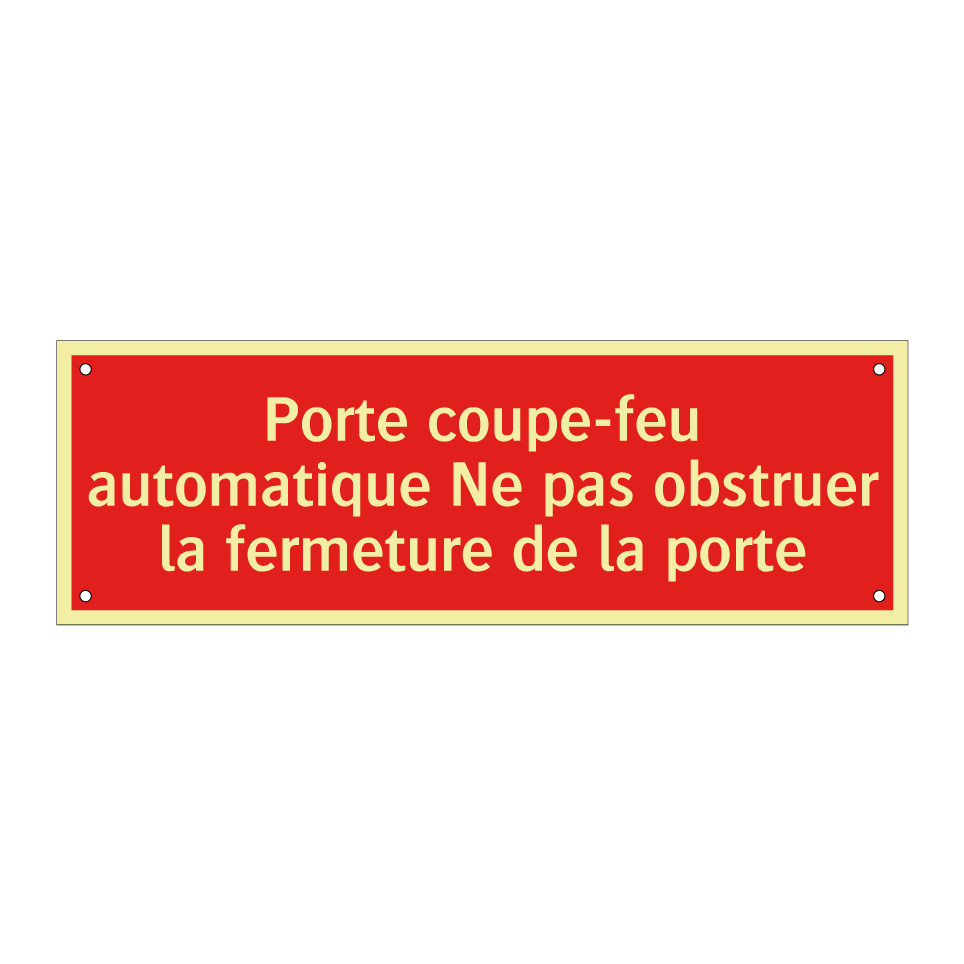 Panneau de signalisation incendie avec le texte Porte coupe-feu automatique Ne pas obstruer la fermeture de la porte