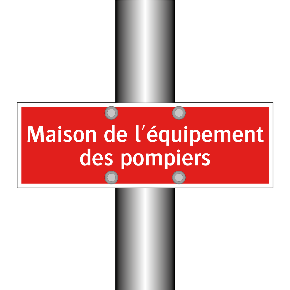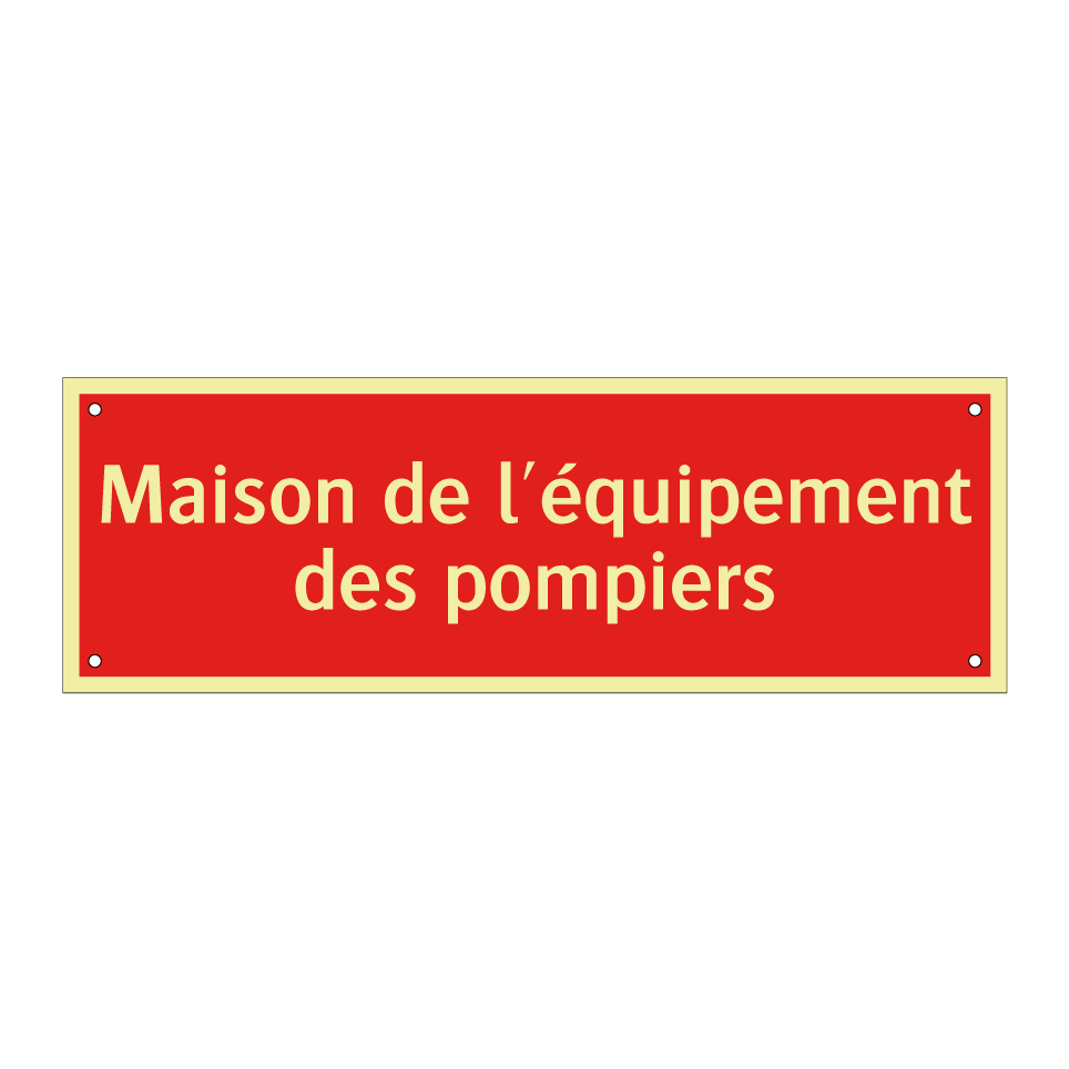 Panneau de signalisation incendie avec le texte Maison de l'équipement des pompiers