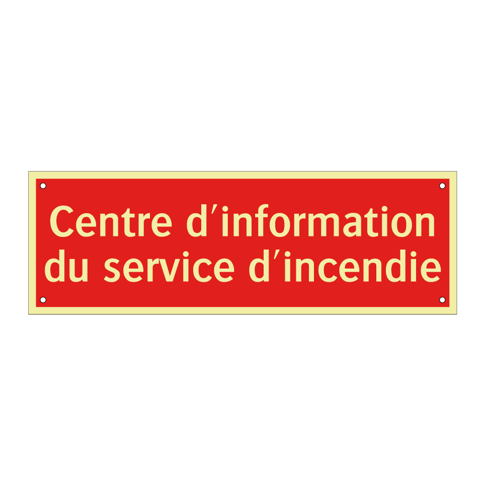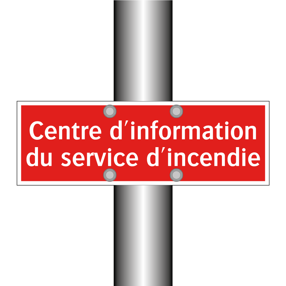Panneau de signalisation incendie avec le texte Centre d'information du service d'incendie