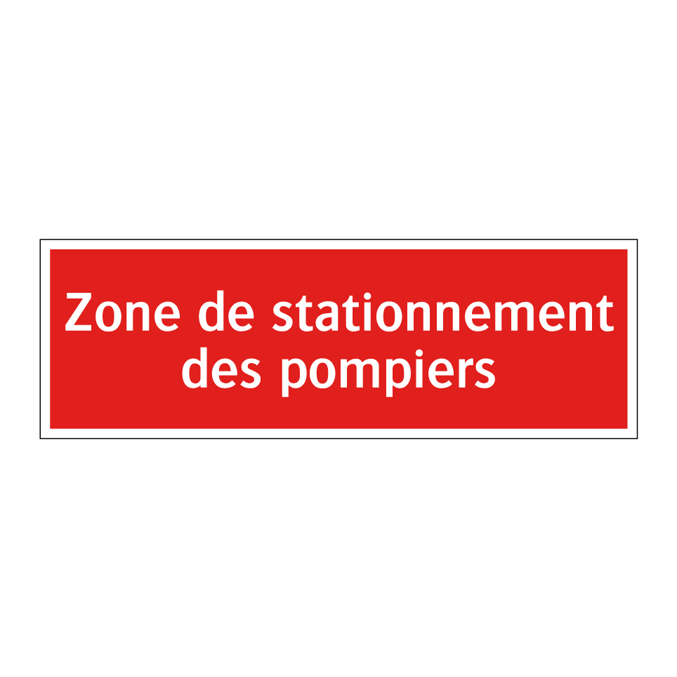 Panneau de signalisation incendie avec le texte Zone de stationnement des pompiers