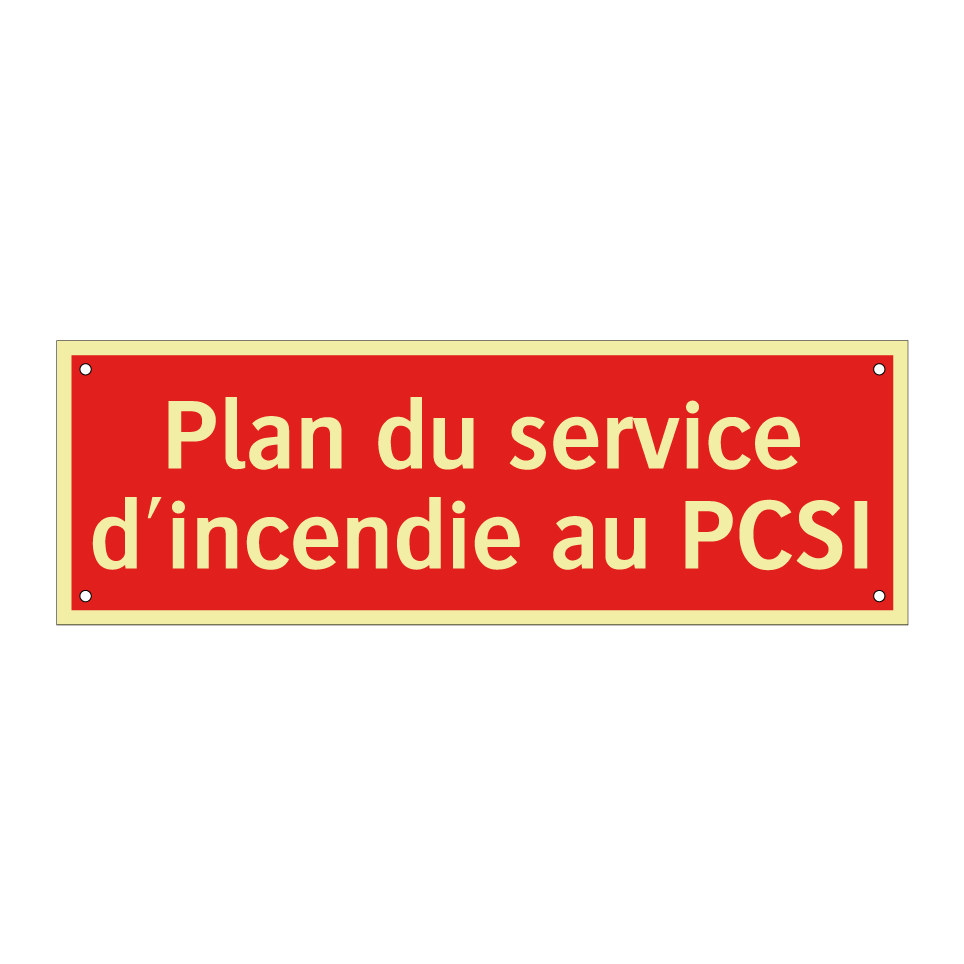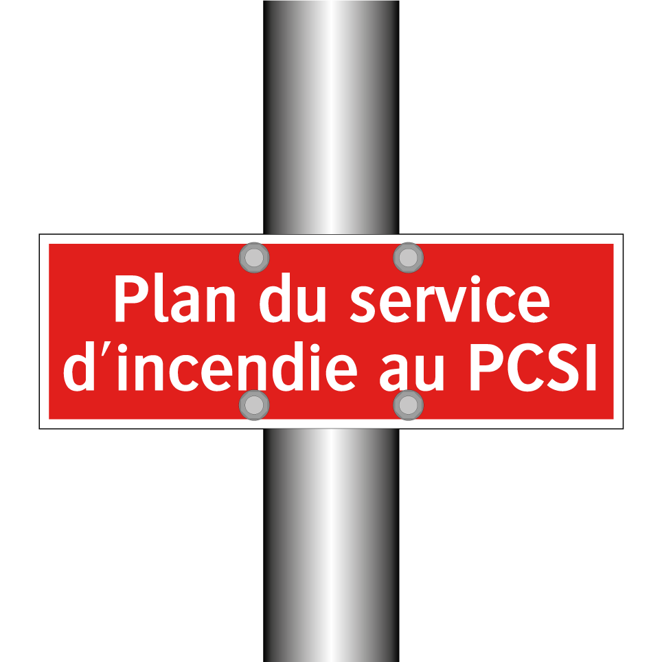 Panneau de signalisation incendie avec le texte Plan du service d'incendie au PCSI