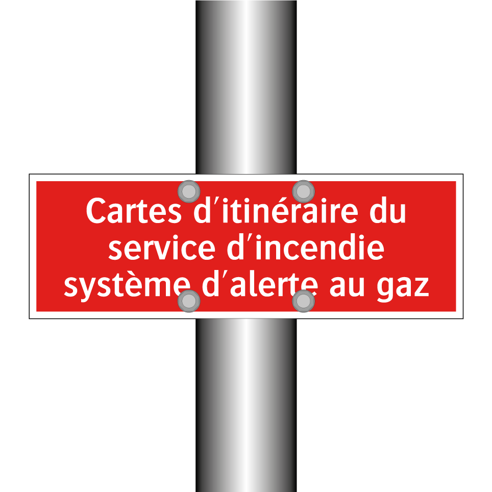 Panneau de signalisation incendie avec le texte Cartes d'itinéraire du service d'incendie système d'alerte au gaz