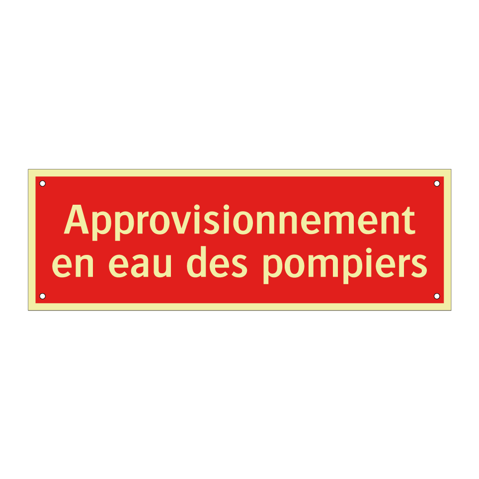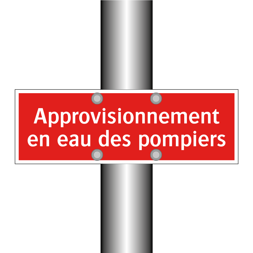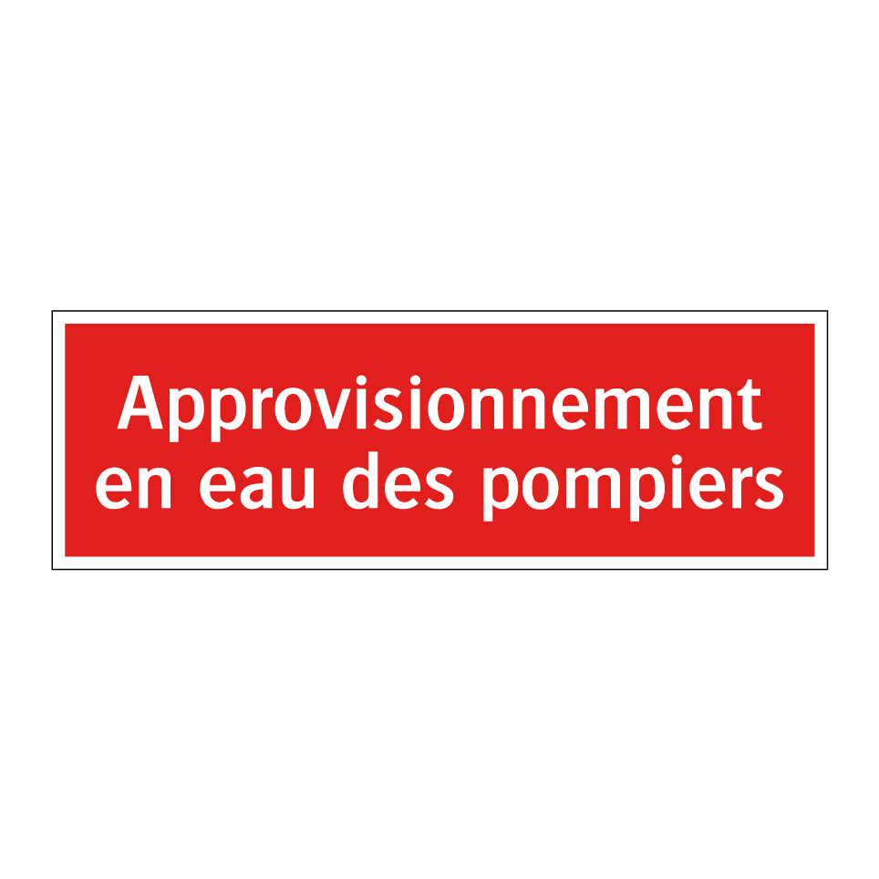 Panneau de signalisation incendie avec le texte Approvisionnement en eau des pompiers