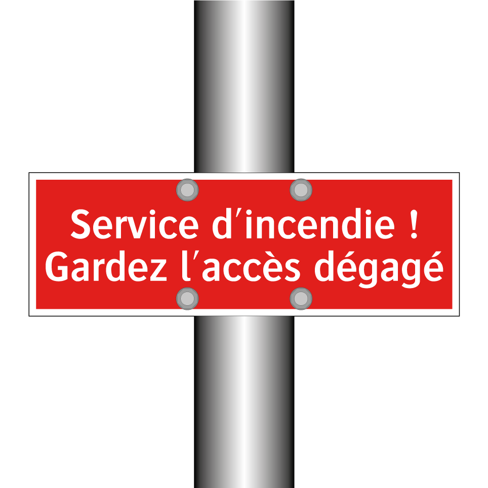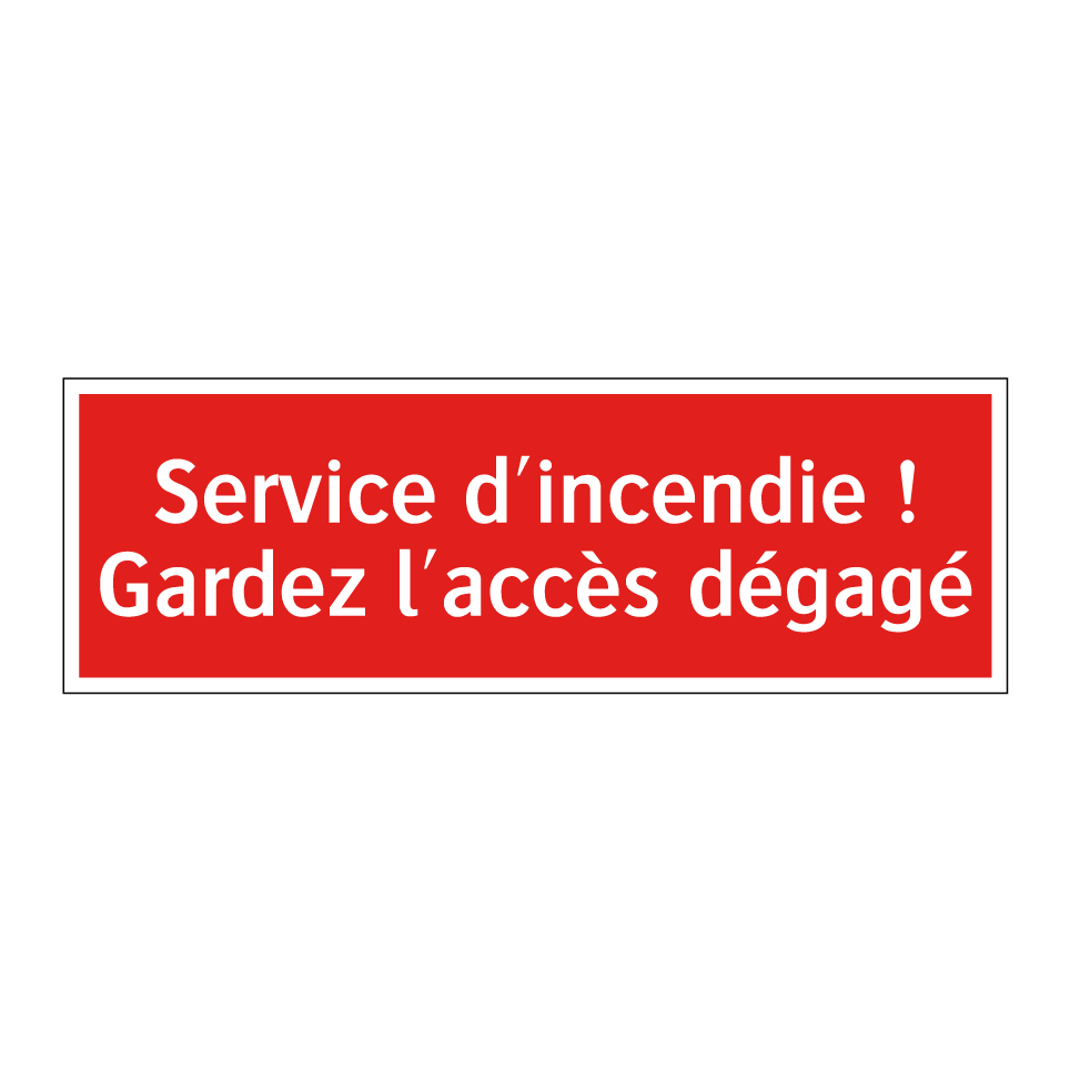 Panneau de signalisation incendie avec le texte Service d'incendie ! Gardez l'accès dégagé