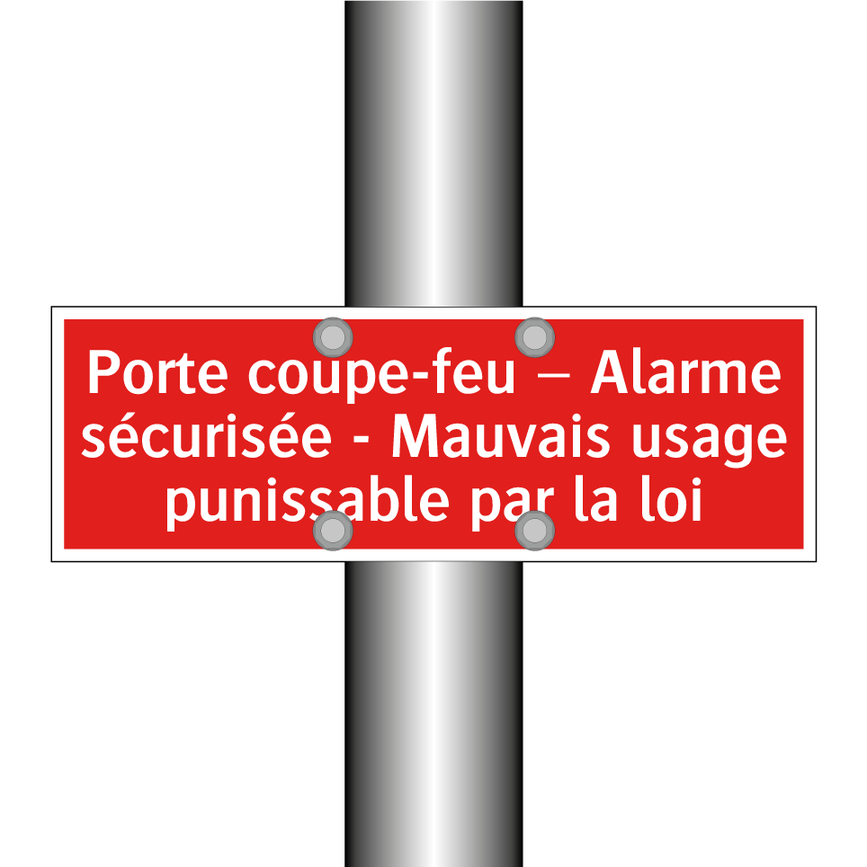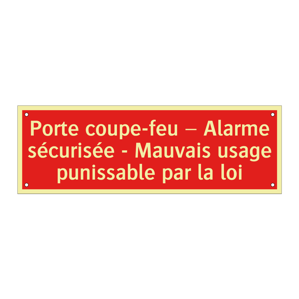 Panneau de signalisation incendie avec le texte Porte coupe-feu – Alarme sécurisée - Mauvais usage punissable par la loi