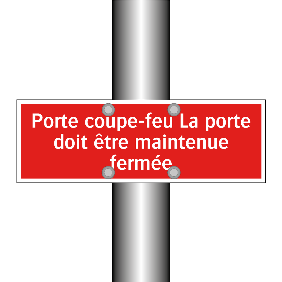 Panneau de signalisation incendie avec le texte Porte coupe-feu La porte doit être maintenue fermée