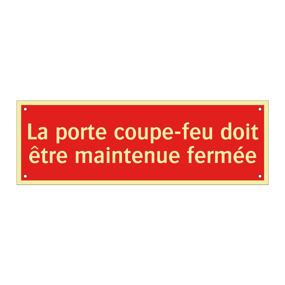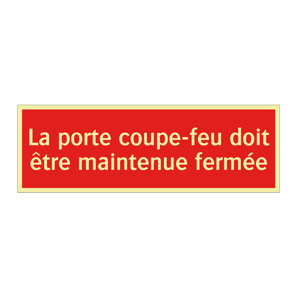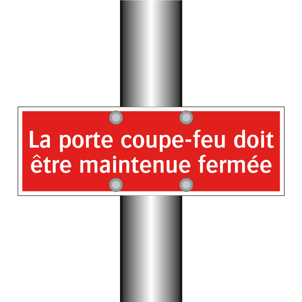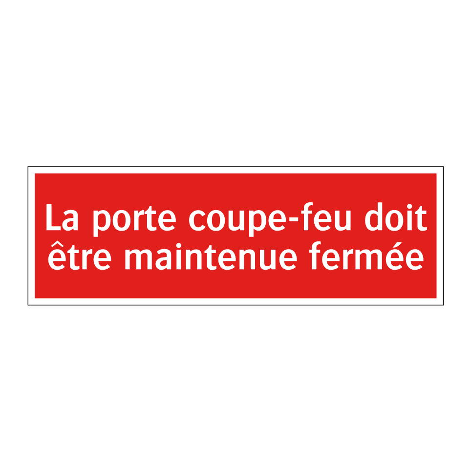 Panneau de signalisation incendie avec le texte La porte coupe-feu doit être maintenue fermée