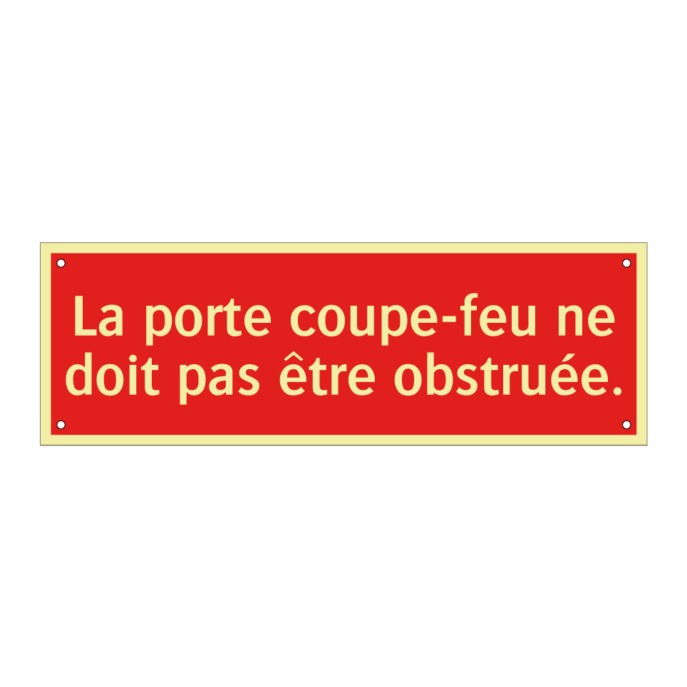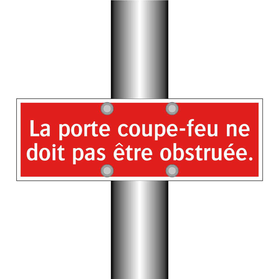 Panneau de signalisation incendie avec le texte La porte coupe-feu ne doit pas être obstruée.