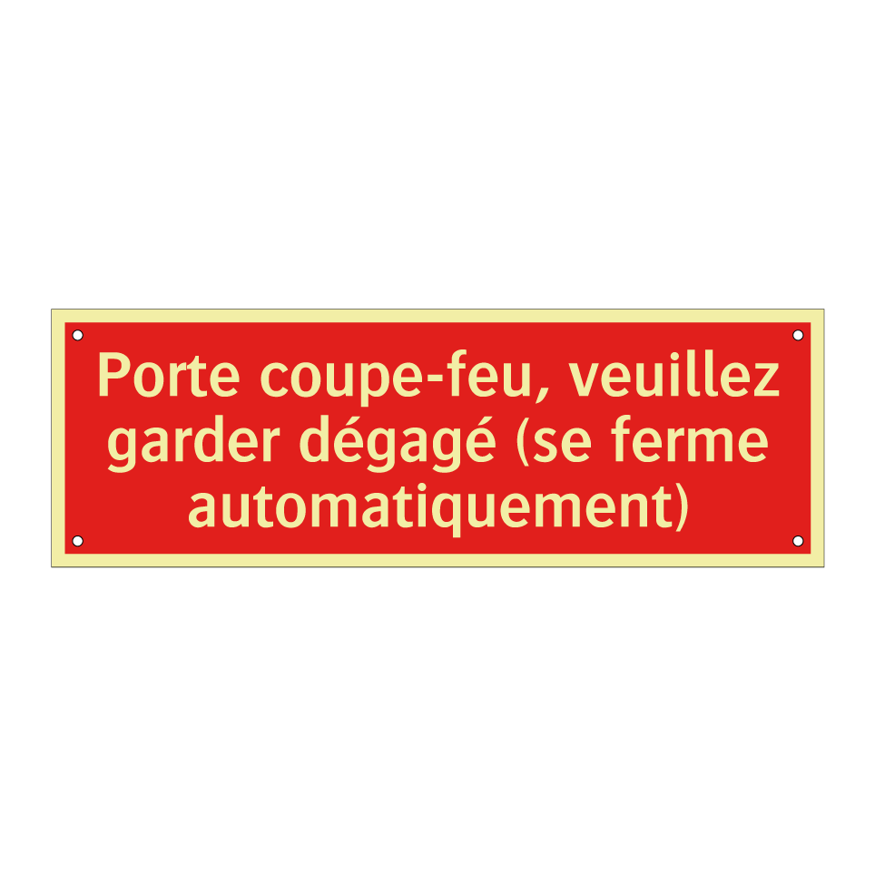 Panneau de signalisation incendie avec le texte Porte coupe-feu, veuillez garder dégagé (se ferme automatiquement)