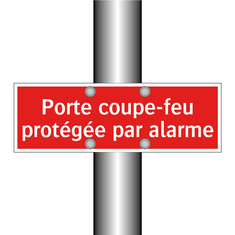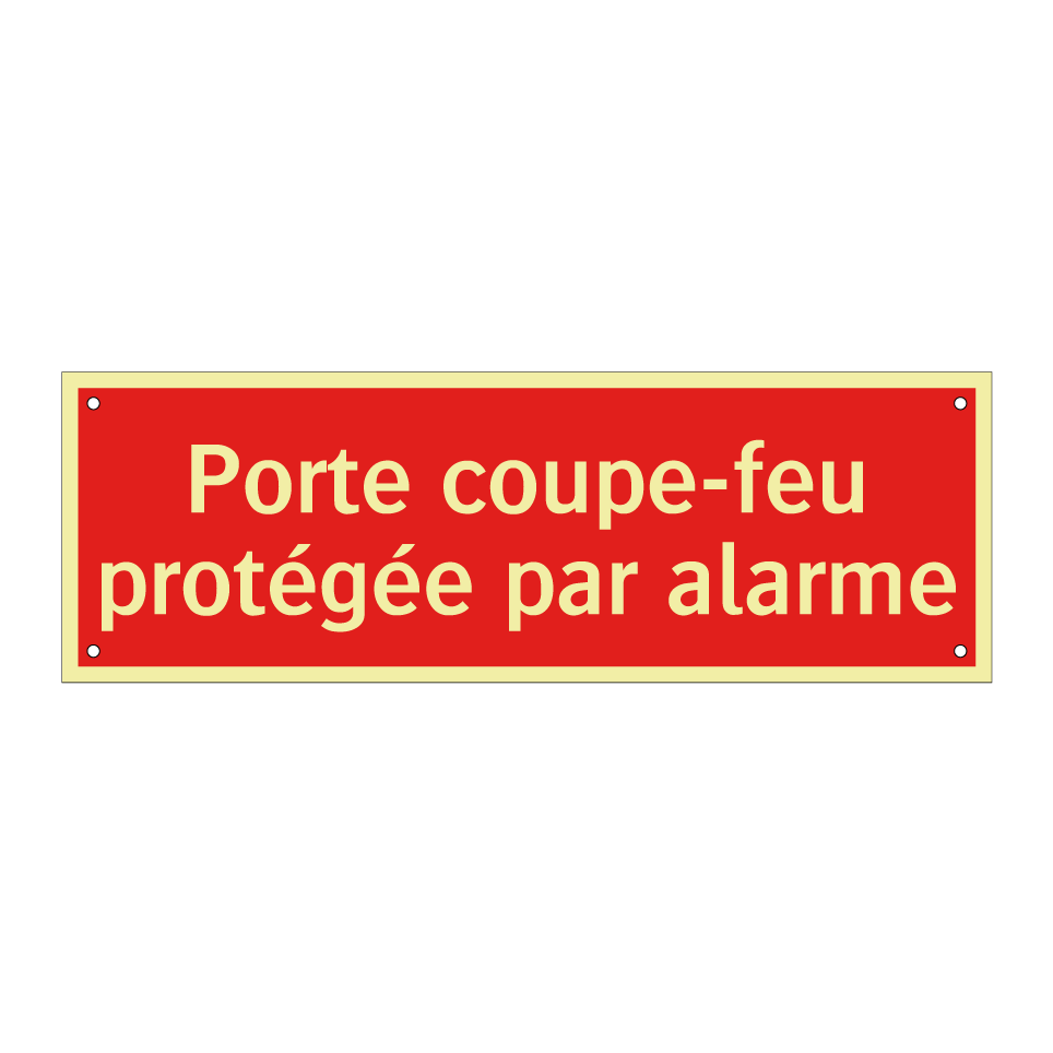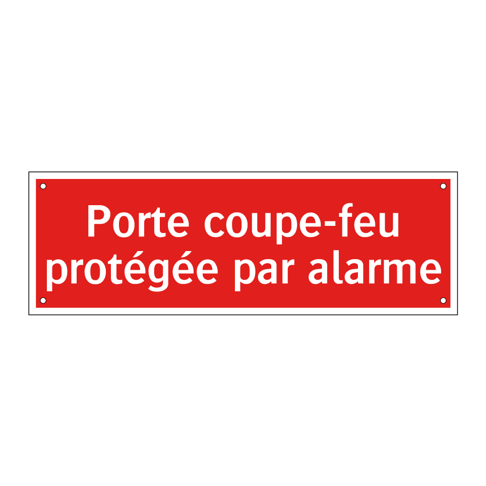Panneau de signalisation incendie avec le texte Porte coupe-feu protégée par alarme