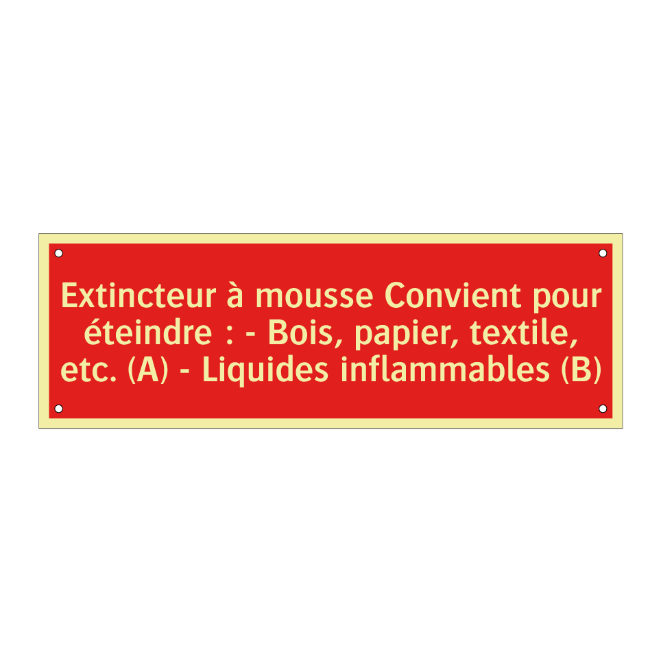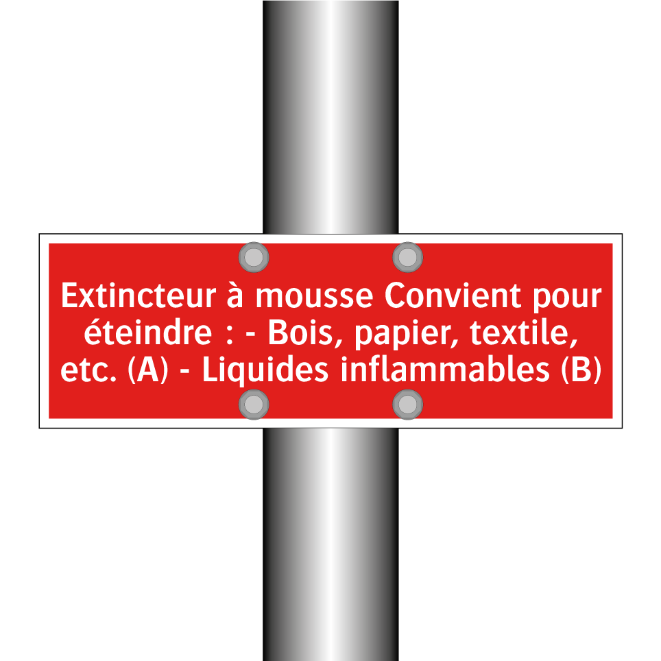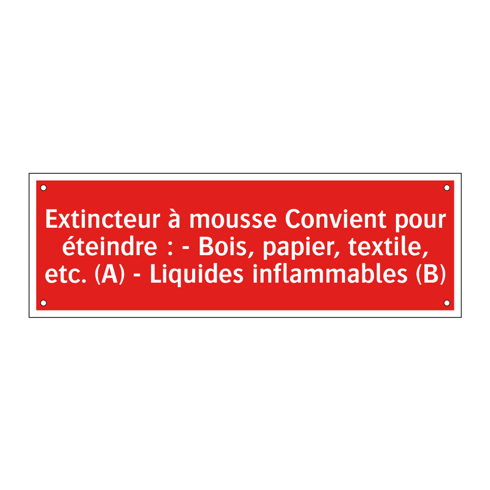 Cette pancarte de sécurité incendie est idéale pour être placée dans des environnements où la sécurité est primordiale, tels que les bureaux, les entrepôts, et les espaces publics. Elle indique clairement l'utilisation d'un extincteur à mousse, efficace pour éteindre les feux de classe A, comme le bois et le papier, ainsi que les feux de classe B, impliquant des liquides inflammables. Grâce à son fond rouge et son texte blanc, elle est facilement visible et attire l'attention en cas d'urgence. Installez-la à proximité des extincteurs pour garantir une intervention rapide et efficace en cas d'incendie.