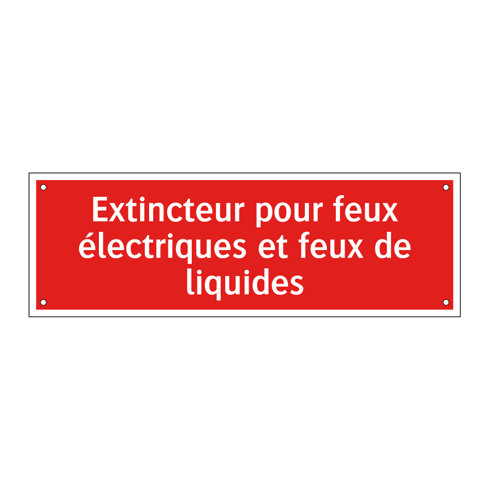 Panneau de signalisation incendie avec le texte Extincteur pour feux électriques et feux de liquides