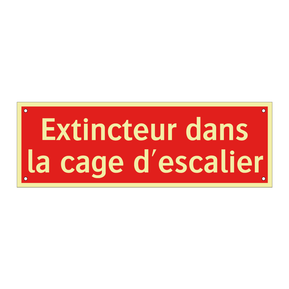 Panneau de signalisation incendie avec le texte Extincteur dans la cage d'escalier