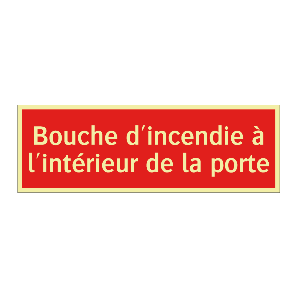 Panneau de signalisation incendie avec le texte Bouche d'incendie à l'intérieur de la porte