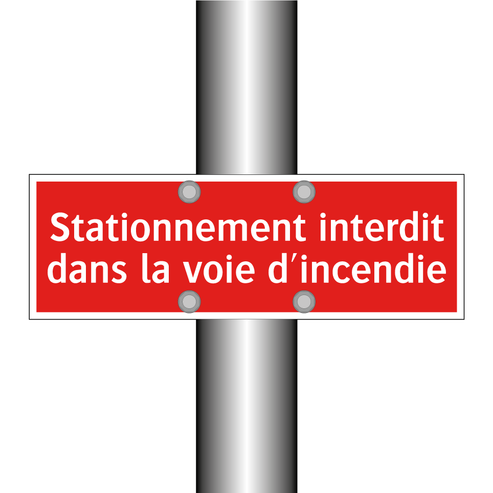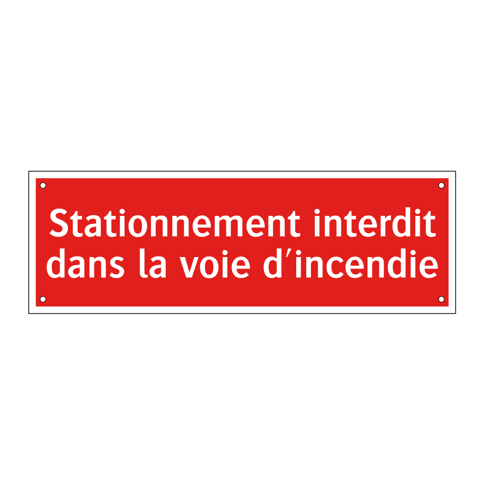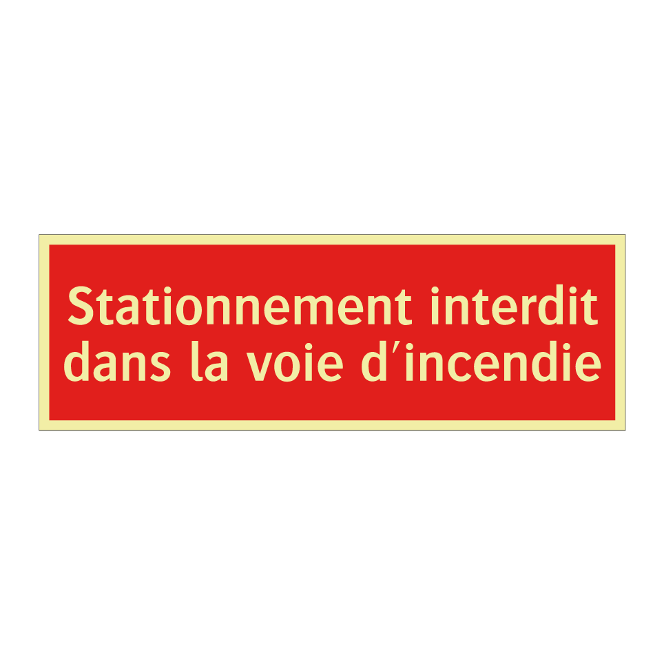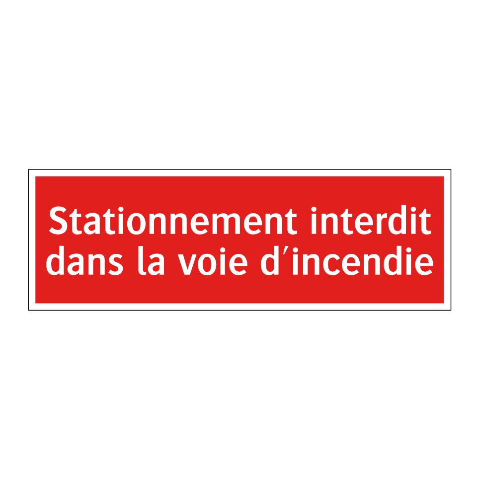 Panneau de signalisation incendie avec le texte Stationnement interdit dans la voie d'incendie