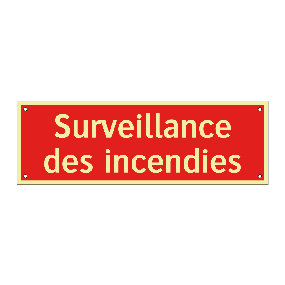 Panneau de signalisation incendie avec le texte Surveillance des incendies