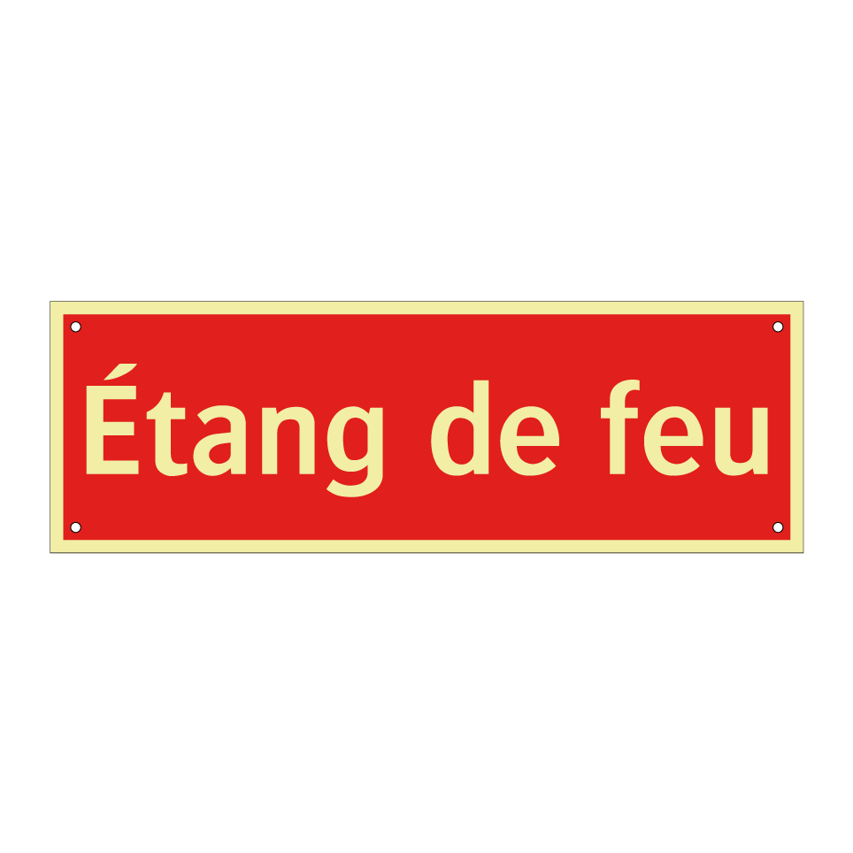 Panneau de signalisation incendie avec le texte Étang de feu