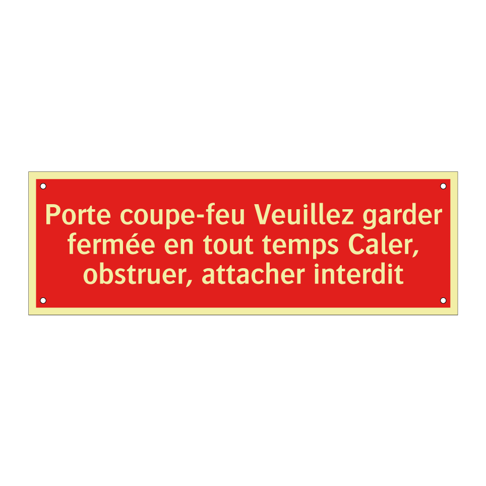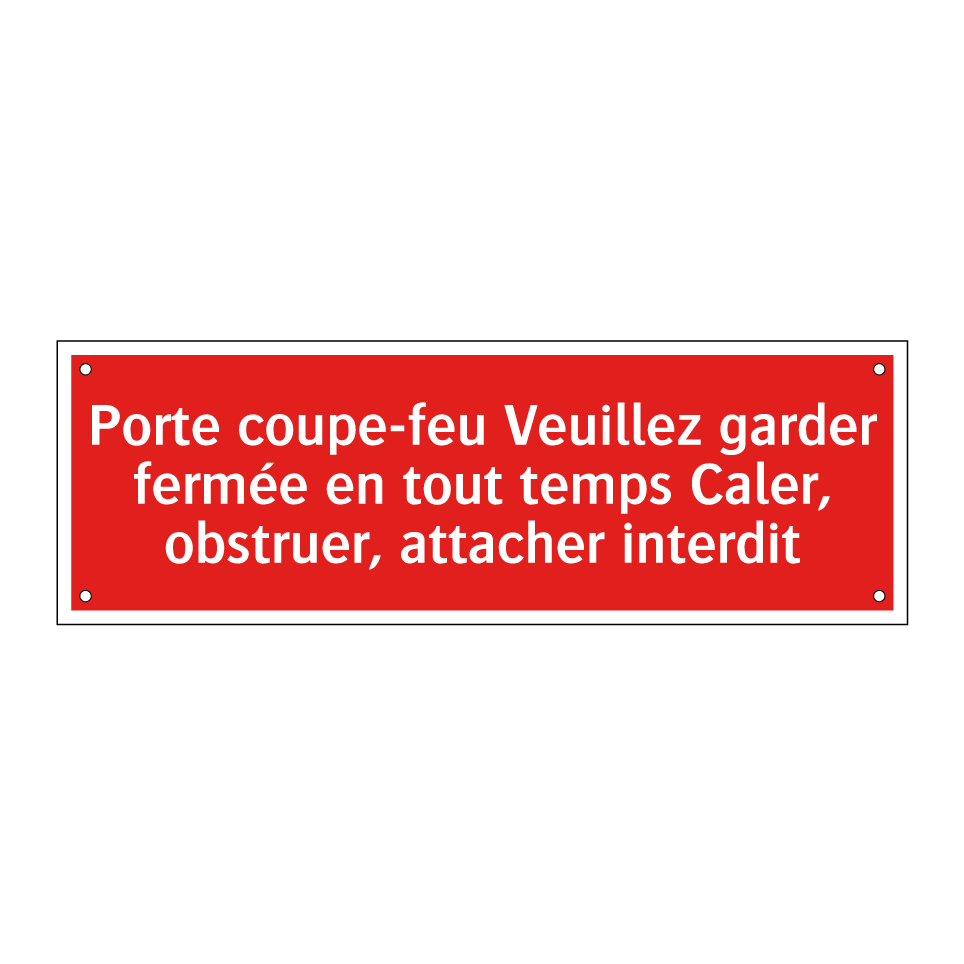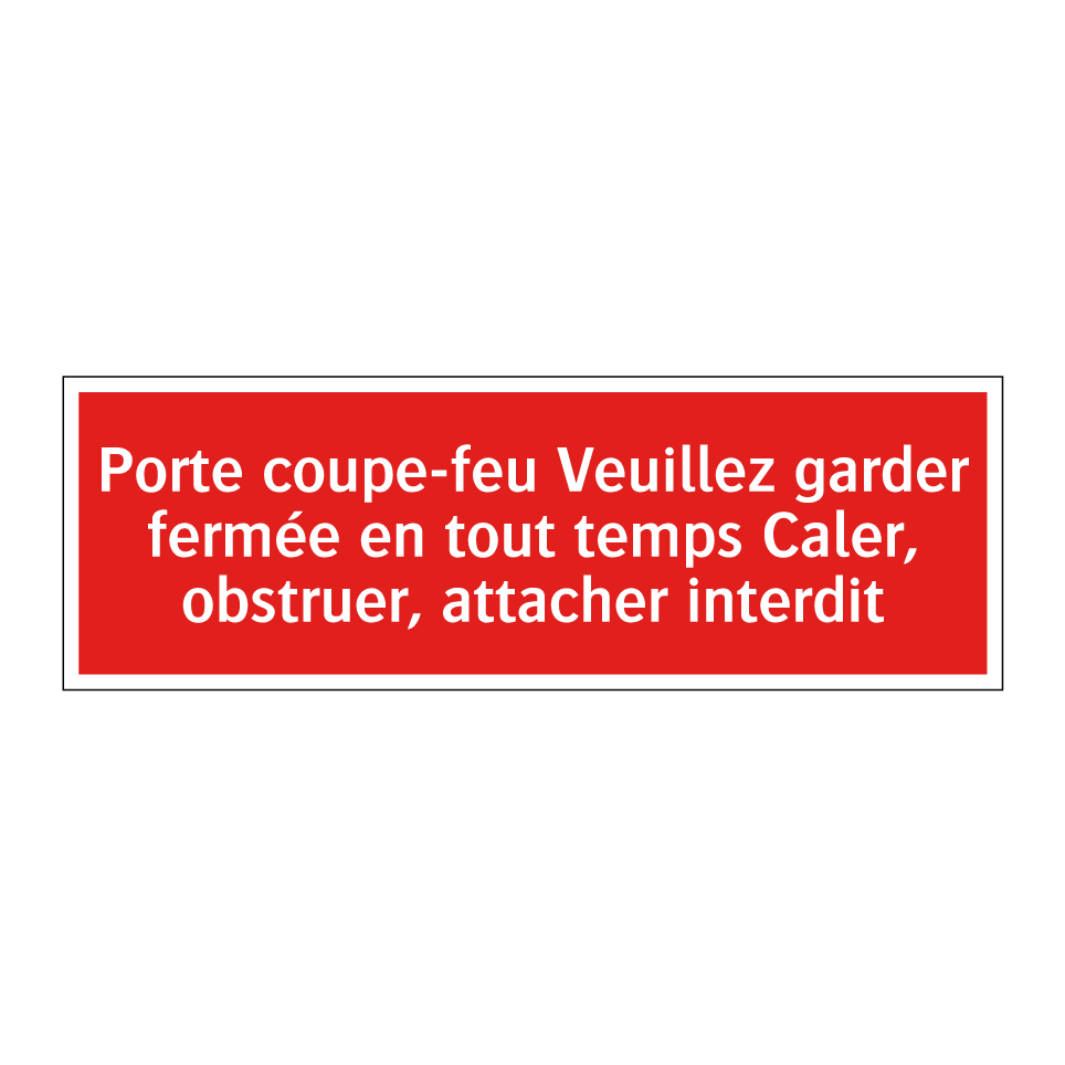 Cette enseigne de sécurité incendie est essentielle pour garantir la sécurité dans les bâtiments. Elle doit être placée sur les portes coupe-feu pour rappeler l'importance de les garder fermées en tout temps. Idéale pour les immeubles de bureaux, les complexes résidentiels, les écoles et les hôpitaux, cette signalisation aide à prévenir la propagation du feu et de la fumée. Avec son fond rouge et son texte blanc, elle est facilement visible et attire l'attention, assurant ainsi que les consignes de sécurité sont respectées.