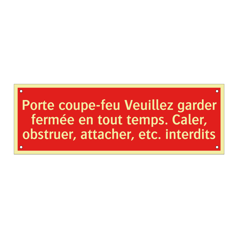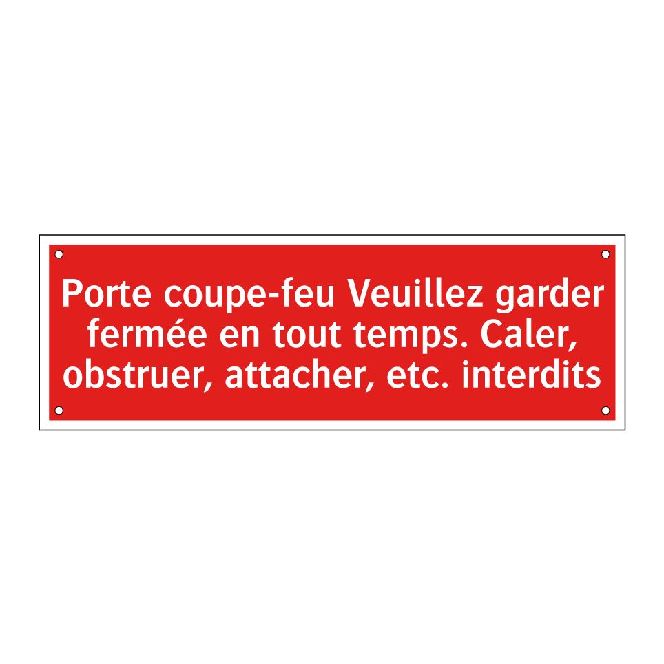 Cette signalisation de sécurité incendie est essentielle pour garantir la sécurité dans les bâtiments. Elle doit être placée sur les portes coupe-feu pour rappeler l'importance de les garder fermées en tout temps. Idéale pour les immeubles de bureaux, les complexes résidentiels, les écoles et les hôpitaux, cette plaque rouge avec texte blanc attire l'attention et assure que les issues de secours restent dégagées. En interdisant de caler ou d'obstruer la porte, elle contribue à prévenir la propagation du feu et à protéger les occupants.